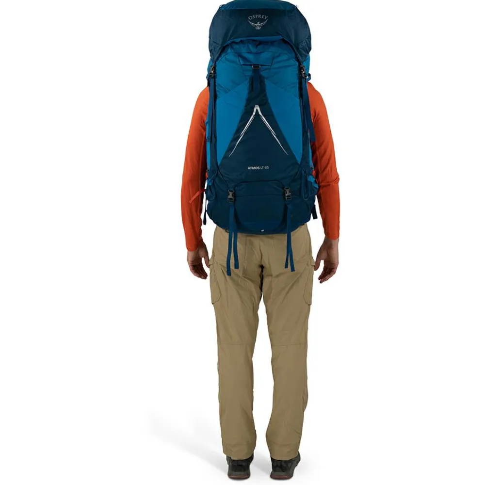 Der geräumige Rucksack wird von einem 4 mm Rahmen gestützt und verfügt über zahlreiche Fächer, Taschen und Befestigungsmöglichkeiten. Ob Fixpunkte für Trekkingstöcke oder Eisgeräte, seitliche Flaschenhalterungen oder praktische Kompressionsriemen – der Atmos AG LT 65 weiß, worauf es bei mehrtägigen oder sogar mehrwöchigen Wanderungen im Gelände ankommt.
