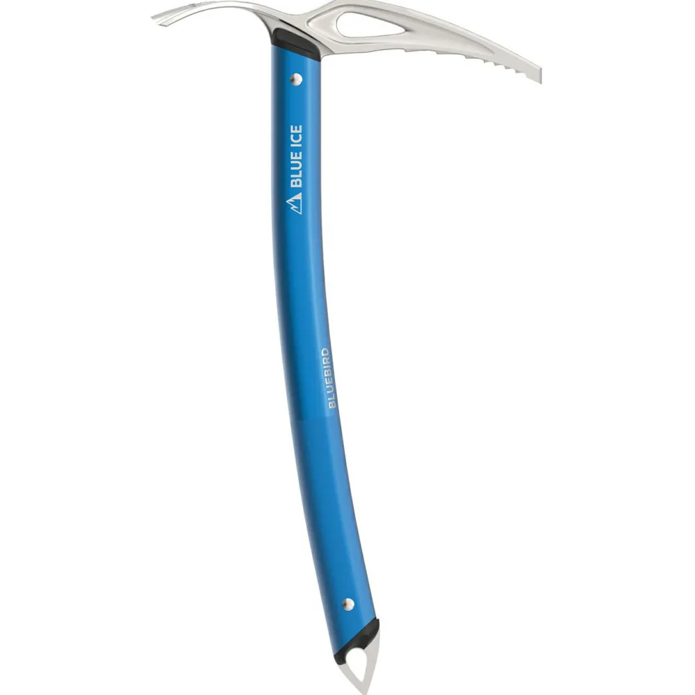 Der Eispickel Bluebird Ice Axe von Blue Ice zeichnet sich durch sein klassisches Design mit geradem Schaft und ein geringes Gewicht aus.Der Kopf besteht aus robustem Chromolystahl, heißgeschmiedet in der Schweiz. Der Schaft hingegen besteht aus leichtem Aluminium, sandgestrahlt um mehr Gripp am Schaft zu erzeugen. Handschlaufe und Karabiner können bei Bedarf sowohl am Schaft unten als auch oben am Kopf angebracht werden.
