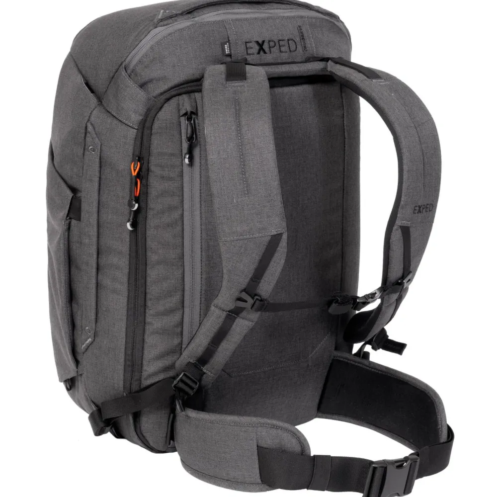 Der Cruiser 35 Reiserucksack von Exped eignet sich perfekt für den täglichen Einsatz im Büro, an der Uni und für Tagesreisen und Geschäftsreisen. Er verfügt über eine praktische Auswahl an Fächern, die die 35 Liter Inhalt perfekt schützen und organisieren. Dazu gehören ein Laptopfach, ein Tabletfach, eine Trinkflaschenhalterung und ein extra Frontfach. Das Hauptfach kann besonders weit geöffnet werden und erleichtert einfaches Be- und Entladen. Mit seinem Tragesystem aus gepolsterten Schulterträgern, abnehmbarem Hüftgurt und Brustgurt macht der Cruiser 35 den Transport von bis zu 13 kg Gepäck ausgesprochen komfortabel. Das recycelte Material ist dabei nicht nur umweltfreundlich, sondern auch wasserdicht und sehr stabil.