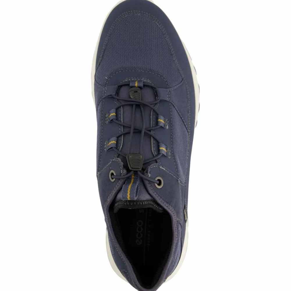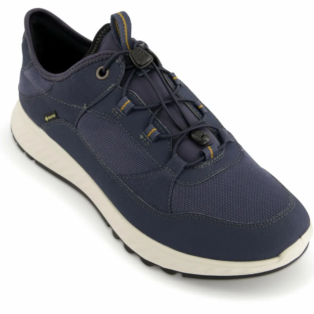 Robuste und komfortable Vielseitigkeit, verpackt in frischem Design: die Exostride GTX Sneakers von Ecco! Mit ihrem textilen Schaft sorgen die sportlichen Freizeitschuhe für Komfort und angenehmes Fußklima, ergänzt durch die GORE-TEX Membran, die absolute Wetterfestigkeit garantiert. Hinzu kommen technische Details wie die gezielt dämpfende SHOCK THRU Konstruktion in der Mittelsohle, die für läuferische Effizienz und Ausdauer sorgt. Abgerundet wird das Ganze durch eine robuste, griffige und profilierte Außensohle. Dadurch sind die Exostride GTX Sneakers sehr vielseitig unterwegs – ob in der Stadt, beim Sport oder draußen im rauen Gelände!