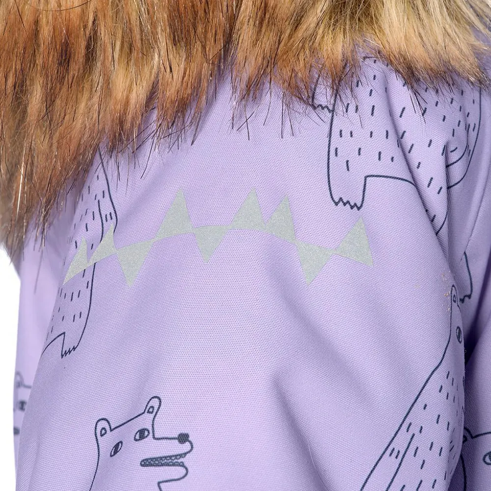 Die PrimaLoft Black Isolierung bietet eine hervorragende Wärmeleistung bei minimalem Gewicht, was ideal für aktive Kinder ist, die sich frei bewegen wollen. Die Wattierung hält die Wärme zuverlässig im Inneren des Overalls, ohne aufzutragen, und sorgt für ein kuscheliges Tragegefühl. Die Ärmel und Beine können sozusagen mitwachsen, denn sie lassen sich um ca. 3 cm verlängern. Der lange Frontreißverschluss erleichtert das An- und Ausziehen, die elastischen Bündchen und die verstellbare Taille sorgen für eine gute Passform. Die abnehmbare Kapuze mit Kunstfellbesatz bietet zusätzlichen Schutz bei Wind und Kälte und lässt sich je nach Wetterlage flexibel anpassen.