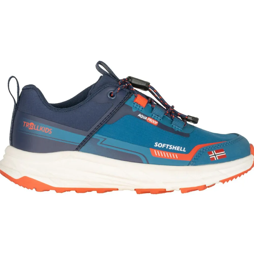 Das Obermaterial aus hochwertigem Softshell in Kombination mit einer robusten Gummisohle macht die Multisportschuhe besonders strapazierfähig und flexibel. Gleichzeitig schützt es vor Wind und leichten Witterungseinflüssen. Das Innenfutter aus atmungsaktivem Mesh mit integrierter wasserdichter Membran sorgt dafür, dass die Füße trocken bleiben und gleichzeitig ausreichend belüftet werden. Die herausnehmbare Innensohle aus Polyester und EVA passt sich den Kinderfüßen an und bietet optimalen Komfort bei jedem Schritt. Das moderne Design überzeugt durch Speed-Laces für eine schnelle und einfache Anpassung sowie durch reflektierende Details, die für mehr Sichtbarkeit bei schlechten Lichtverhältnissen sorgen. Multisportschuhe, die Komfort und stilvolles Design auf ideale Weise verbinden – die Kid’s Bjordal Hiker von Trollkids.