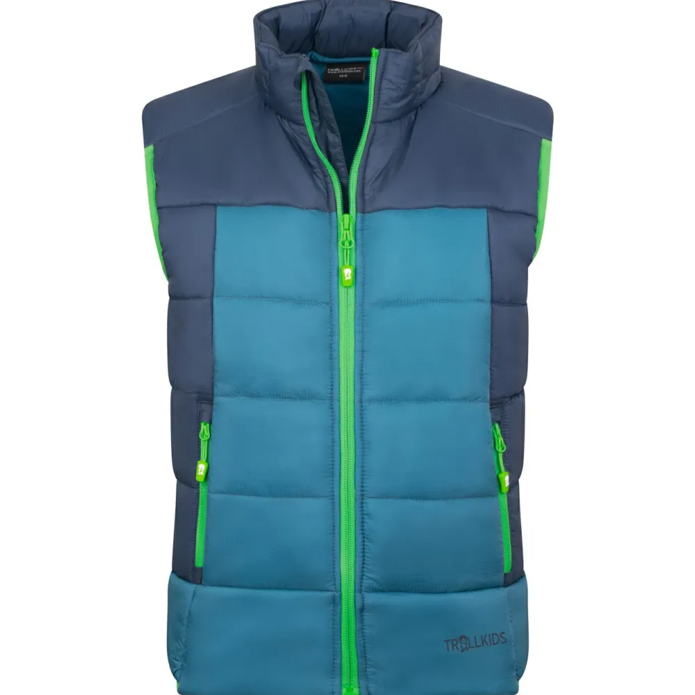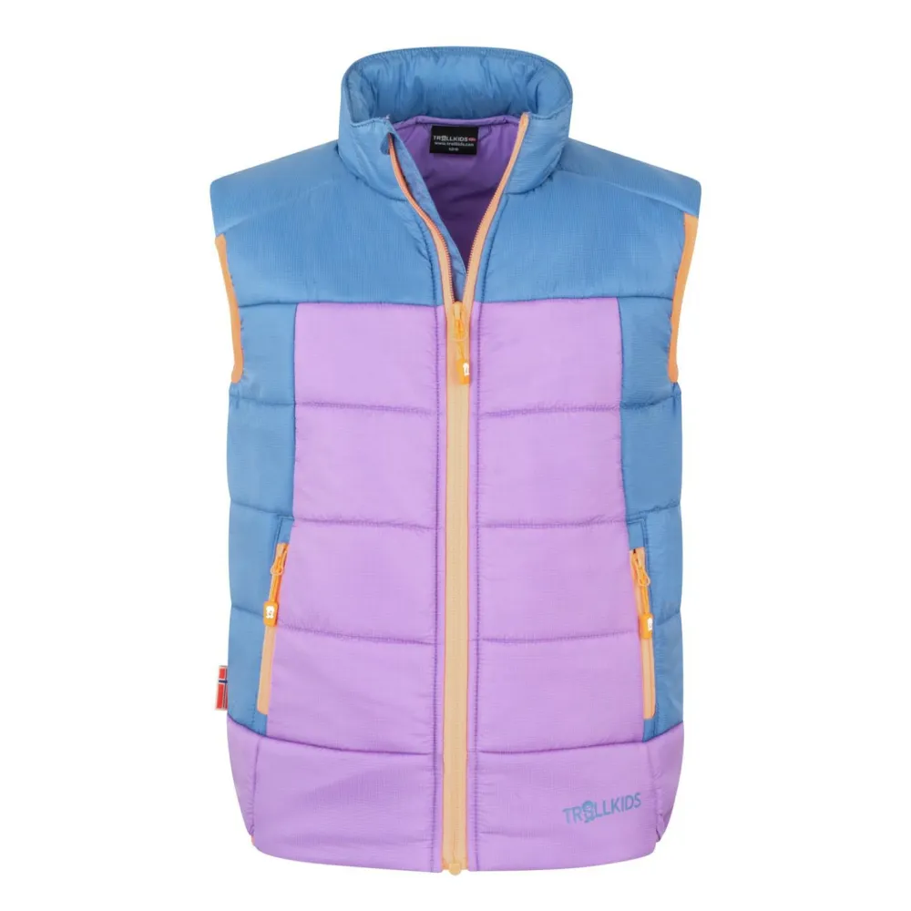 Die leichte Kid’s Hardanger Vest Kunstfaserweste von Trollkids kann Dein Kind sowohl als Midlayer unter Hardshell und Winterjacken ziehen, als auch in den Übergangsjahreszeiten als wärmende Außenschicht.Durch den elastischen Saum und die elastischen Armabschlüsse wird kein kühler Wind unter die Weste fahren können.In den zwei Reißverschlusstaschen kann Dein Kind beispielsweise den Haustürschlüssel sicher verstauen.Bekanntermaßen achtet Trollkids auf Nachhaltigkeit und hat daher die Kunstfaserfüllung zu 100 % aus recyceltem Polyester gefertigt.