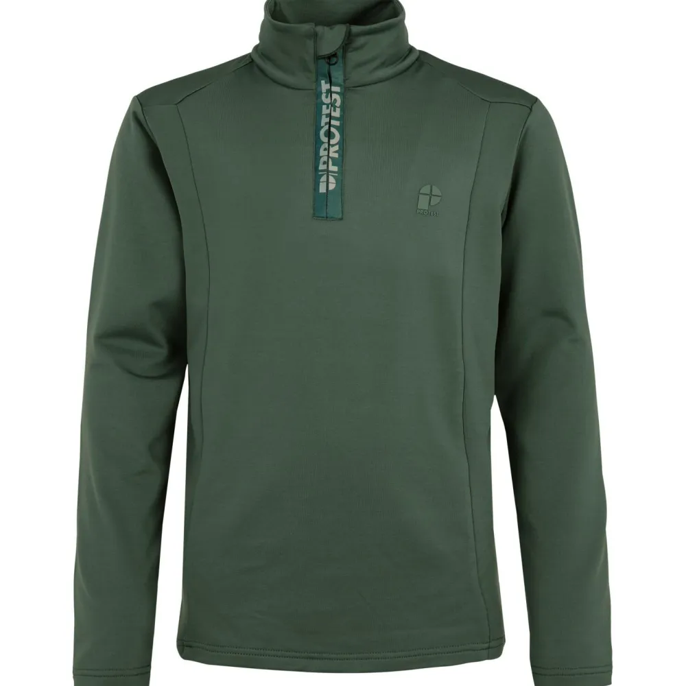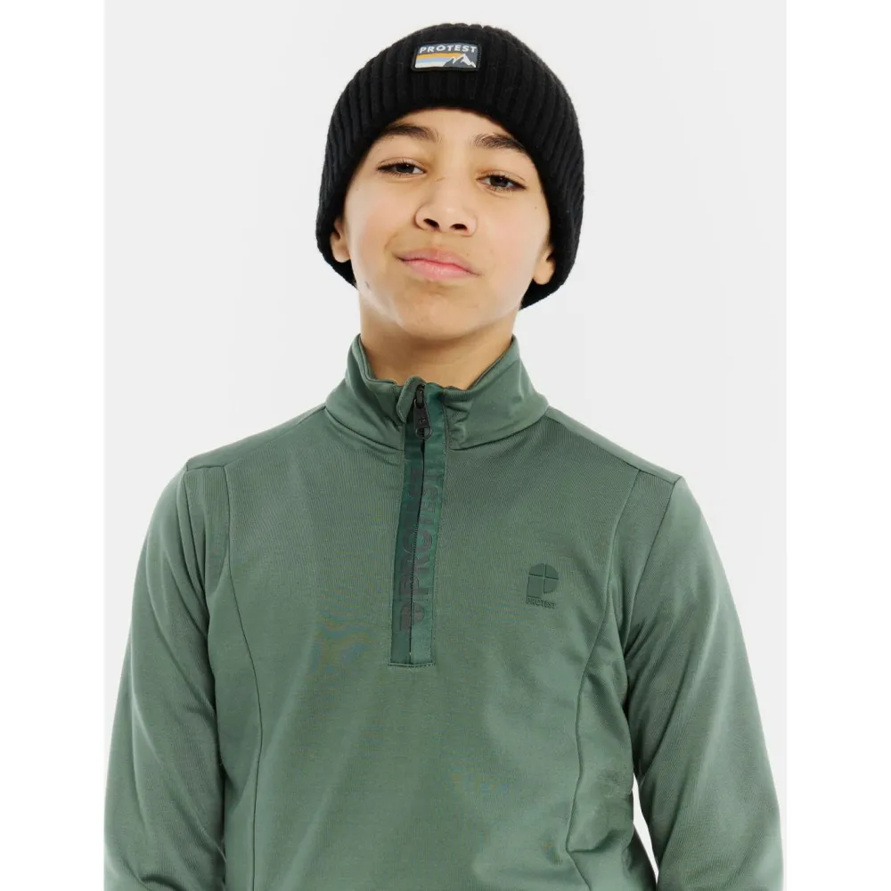 Der Kid’s Rewillowy 1/4 Zip Active Top von Protest eignet sich für Ski- und Snowboardtouren. Er ist atmungsaktiv, schnelltrocknend und stretchy. Damit bietet der Fleecepullover Kindern und Jugendlichen ein hohes Maß an Funktionalität und Tragekomfort. Er wurde aus 92 % recyceltem Polyester hergestellt. Der Stehkragen schmiegt sich angenehm an den Hals an und hält ihn angenehm warm.