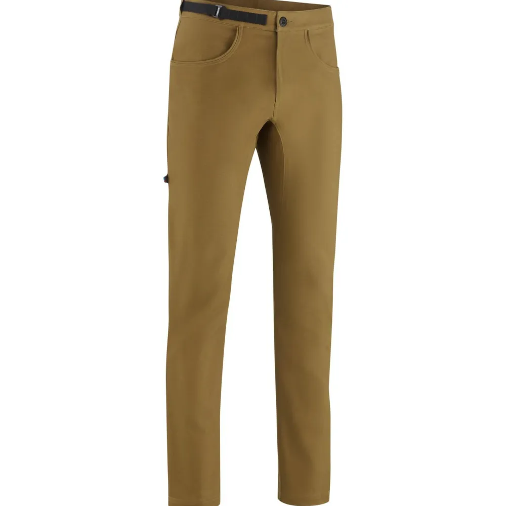 Der Piaz Pants von Edelrid können weder enge Kamine und Risse, noch raue Mantel-Ausstiege in Fontain Bleau etwas anhaben. Durch die Bio-Baumwolle ist sie besonders robust.Die Abnäher und Zwickel am Knie und der Stretch-Anteil gewährleisten dennoch eine sehr gute Bewegungsfreiheit. Der flache Bund ist unter einem Klettergurt besonders angenehm zu tragen, da er keine Druckstellen verursacht.Sowohl im Alltag, als auch beim Bouldern kann die Piaz Pants eine coole Figur machen, ihr lockerer Schnitt mit den schmal zulaufenden Beinen sieht einfach lässig aus.