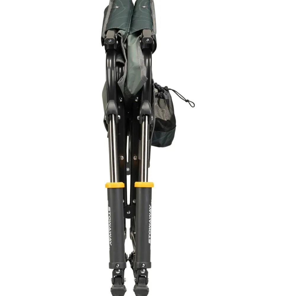 Der Stowaway Rocker lässt sich kompakt zusammenfalten – perfekt für alle, die wenig Platz im Van, Kofferraum oder Keller haben. Mit einem Gewicht von nur 5,4 kg ist er leicht zu transportieren, aber trotzdem stabil und belastbar bis 130 kg. Die etwas höhere Sitzposition (ca. 45–50 cm) erleichtert Dir das Aufstehen, während die hohe Rückenlehne und die festen Komfort-Armlehnen für entspanntes Sitzen sorgen – auch über Stunden.