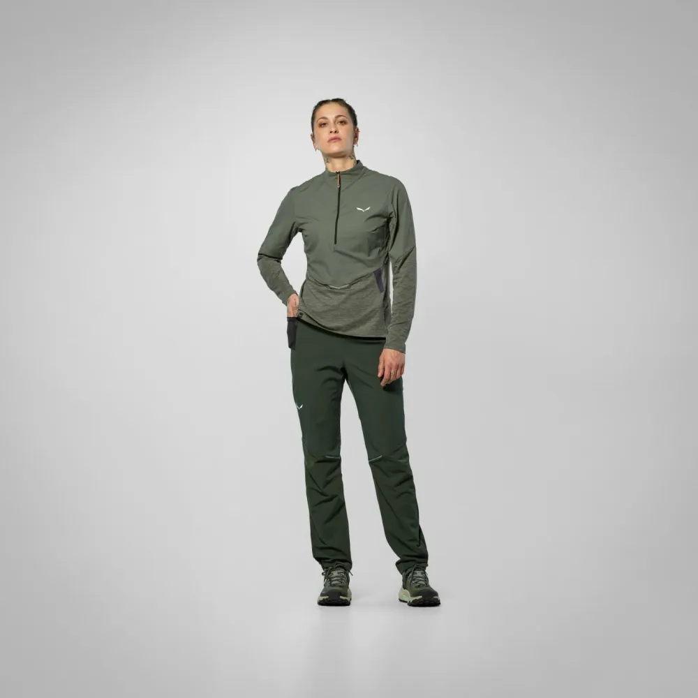 Ob Du auf alpinen Trails unterwegs bist, beim Skitouren-Aufstieg ins Schwitzen kommst oder abends durch die Stadt joggst – das Women’s Pedroc Dry Wind HZ Tee von Salewa passt sich Deinem Tempo an und eignet sich als Base- oder Midlayer. Das weiche Dry’ton Material fühlt sich angenehm an und transportiert Feuchtigkeit ruckzuck ab. So bleibst Du auch bei hoher Intensität trocken.