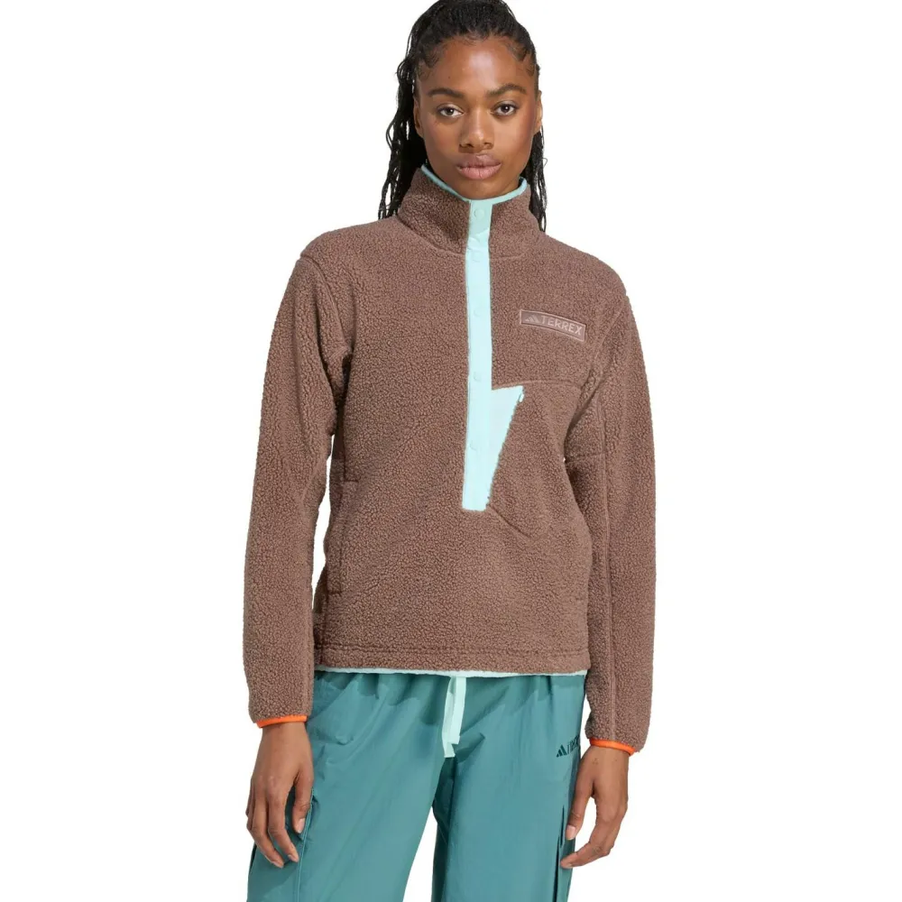 Stilvoll und funktional – das Women’s Terrex Xploric High Pile Fleece von adidas Terrex kombiniert beides mühelos. Die halblange Knopfleiste ermöglicht eine individuelle Belüftung, während der Stehkragen Dich vor Wind schützt. Elastische Ärmelbündchen sorgen für einen optimalen Sitz und verhindern das Eindringen von Kälte. Ideal für entspannte Tage im Freien.