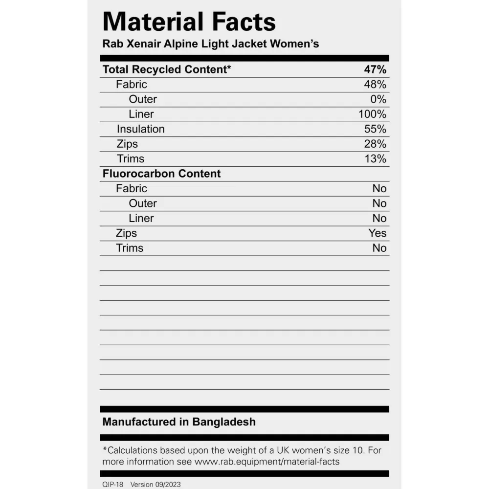 Die Women’s Xenair Alpine Light Jacket von Rab ist die ideale Damen-Isolationsjacke für anstrengende Outdoor-Aktivitäten mit gelegentlichen Pausen. Sie bietet ein perfektes Gleichgewicht zwischen Wärmeisolation und Atmungsaktivität. Ob beim Bergsteigen oder auf Skitouren, mit dieser Jacke bist Du bestens ausgerüstet.
