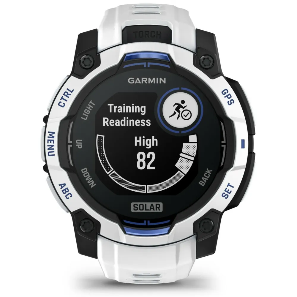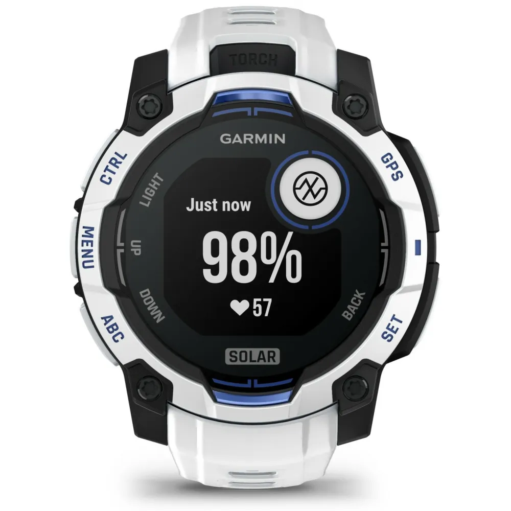 - Instinct 3 – 45 mm, Solar Multisport-Smartwatch mit Silikonarmband; Lade-/Datenkabel; Dokumentation