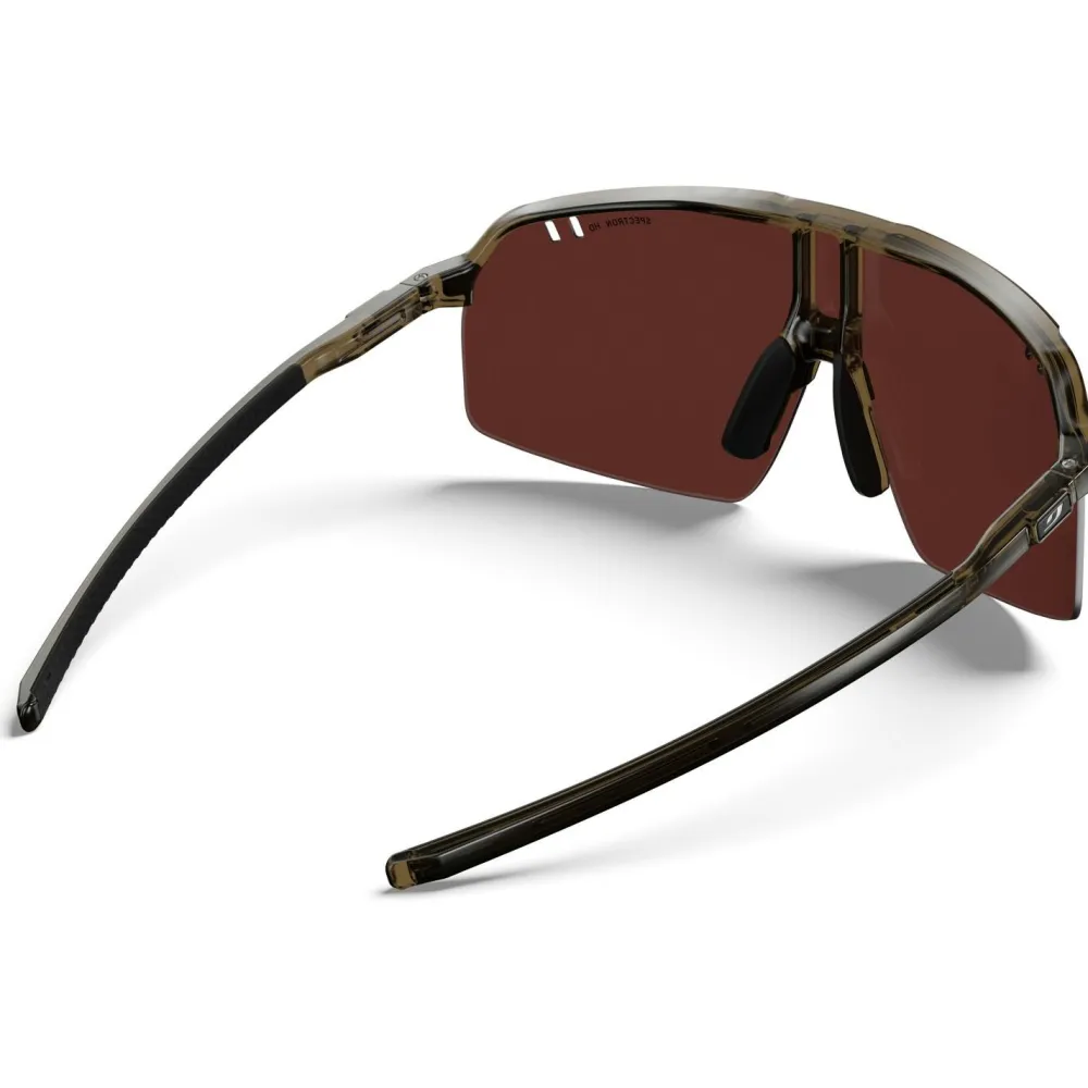 Die Intensity Spectron HD S3 von Julbo ist eine besonders leichte Fahrrad- und Trailrunning-Brille für sportliche Einsätze, bei denen Du Wert auf freie Sicht und sicheren Halt legst. Die großflächige Scheibe bietet ausgeprägte Panoramasicht, während Front Venting die Luftzirkulation unterstützt und Beschlagen reduziert.