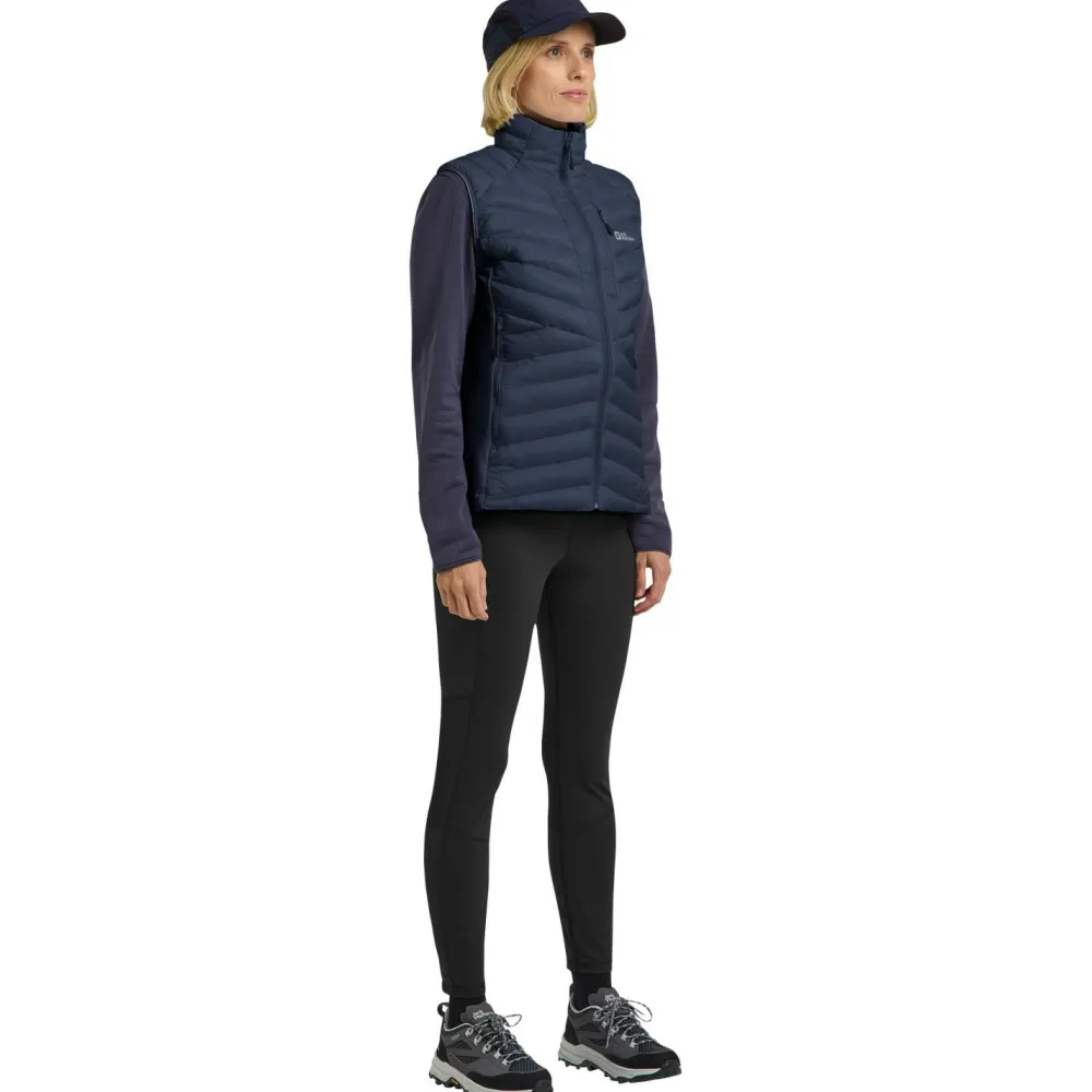 Die Women’s Routeburn Pro Insulation Vest von Jack Wolfskin eignet sich für kalte Tage in der Natur. Sie ist atmungsaktiv, schnelltrocknend, isolierend und wasserabweisend und winddicht. Dank der Verarbeitung von recyceltem Polyester punktet die Softshellweste zudem in Bezug auf Nachhaltigkeit. In der Brusttasche mit Reißverschluss kannst Du viele Kleinigkeiten aufbewahren, die Du nicht in der Hand tragen möchtest. Mit den beiden Seitentaschen mit Reißverschluss bietet die Softshellweste zusätzlichen Stauraum. Sie ist ein echter Allrounder für Tage, an denen Du Dir zusätzlichen Schutz wünschst.