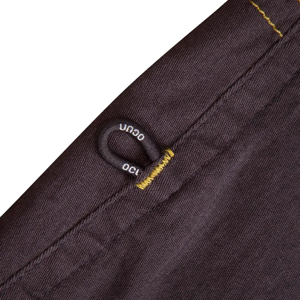 Wenns beim Sportklettern und Bouldern mal wieder so richtig zur Sache geht, dann kommt die Jaws Pants von Ocun ins Spiel. Diese Hose kann aufgrund ihres Designs vor allem in der Halle und in Klettergärten punkten. Durch den geraden und großzügigen Schnitt ermöglicht sie eine gute Bewegungsfreiheit und wirkt nicht einengend. Das Material ist dabei besonders atmungsaktiv und hilft entstehende Feuchtigkeit schnell an die Umwelt abzugeben.Durch den Gummizug im Saum sitzt diese Hose immer perfekt. Gerade in Verbindung mit einem Klettergurt ist dies sehr angenehm. Die Beinabschlüsse wurde ebenfalls mit einem Gummizug versehen, sodass auch hier lästiges Verrutschen der Hose ausbleibt.