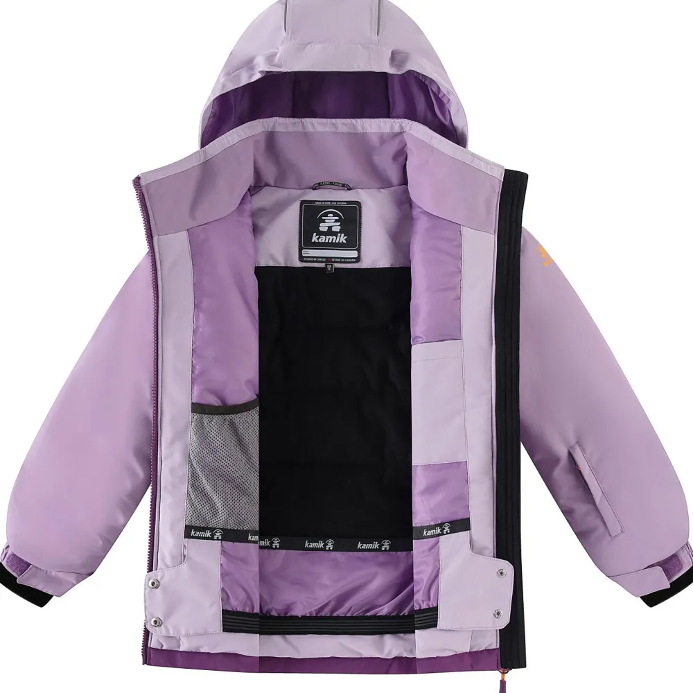 Die Kid’s Lara Skijacke von Kamik wurde speziell für den Wintersport konzipiert, eignet sich aber genauso gut für den täglichen Einsatz und ausgelassene Schneespiele. Der integrierte Schneefang verhindert zuverlässig, dass Schnee bei Stürzen oder Tobereien ins Jackeninnere gelangt. Mit einer Wassersäule von 10.000 mm und vollständig getapten Nähten bleibt Dein Kind auch bei feuchtem Winterwetter angenehm trocken.