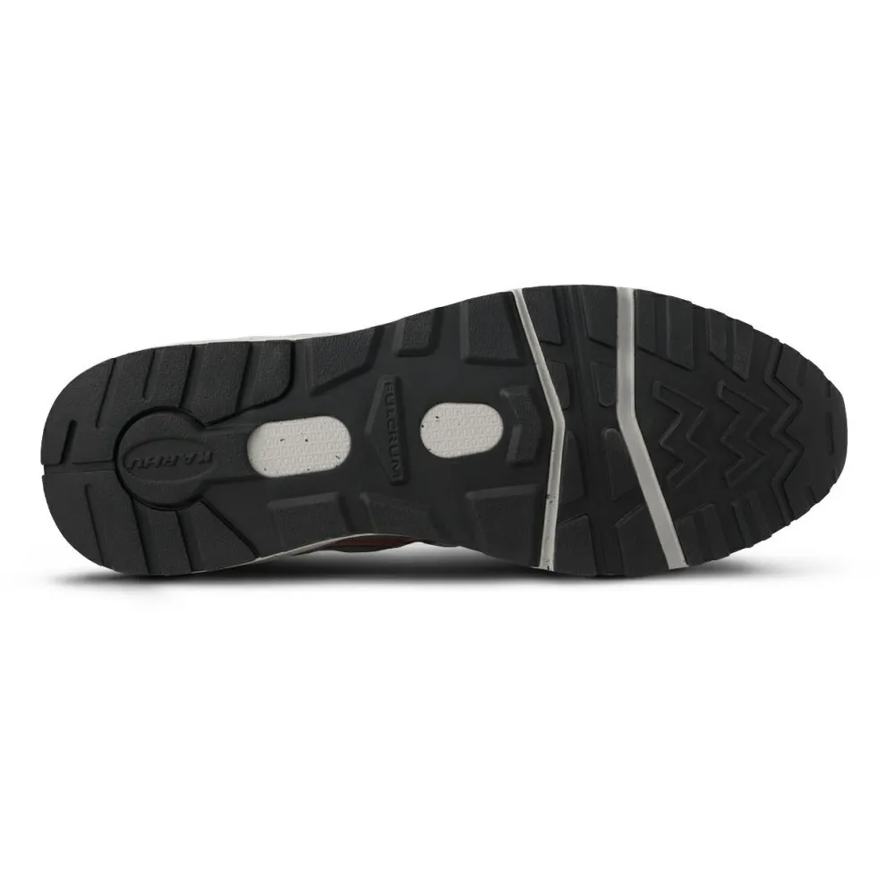 Die Aria Sneaker von Karhu greifen das Design der 90er auf und bringen es mit aktuellen Materialien und Details in die Gegenwart. Die Kombination aus glattem und strukturiertem Wildleder sorgt für eine hochwertige Optik und angenehme Haptik. Mesh-Einsätze verbessern die Luftzirkulation und machen den Schuh auch bei wärmeren Temperaturen tragbar. Die reflektierenden Elemente sind nicht nur ein stilistisches Detail, sondern erhöhen Deine Sichtbarkeit bei schlechten Lichtverhältnissen – etwa auf dem Heimweg nach einem langen Tag in der Stadt.