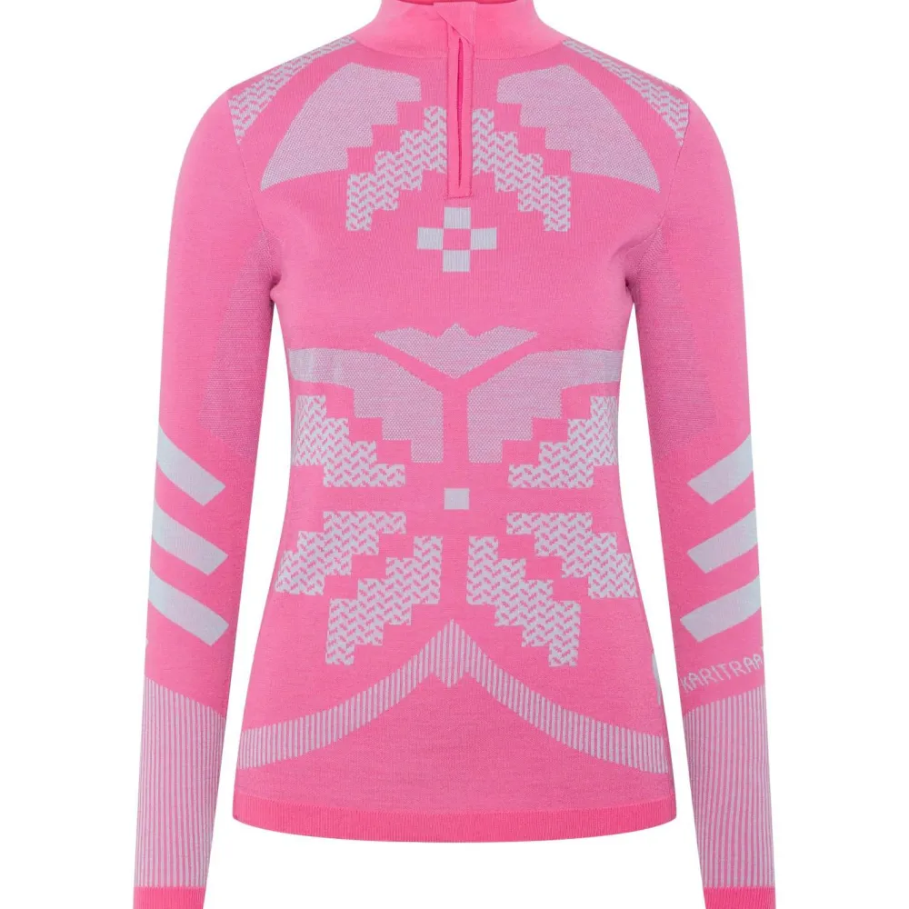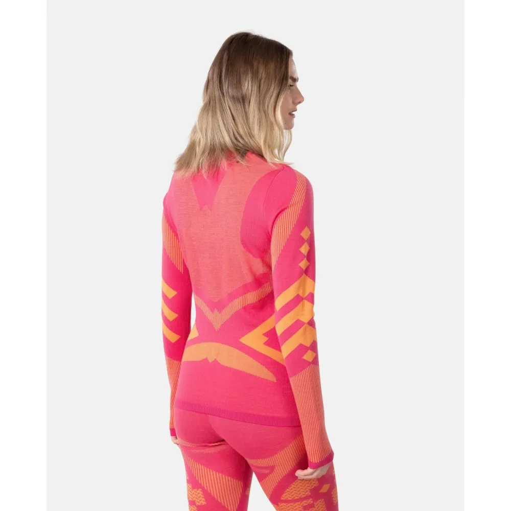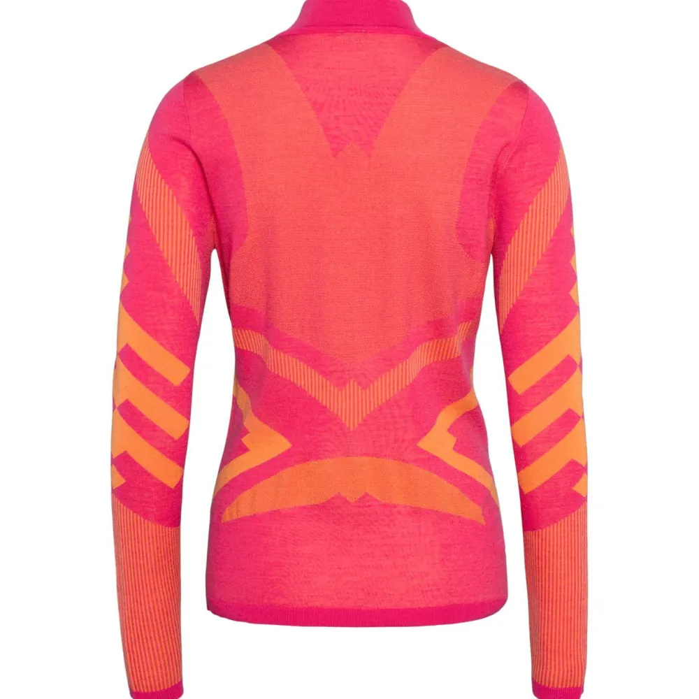 Bringt Farbe in die dunkle Jahreszeit – das isolierende Women’s Half Zip Langarmshirt von Kari Traa fällt auf!Für den Wintersport als First Layer oder Midlayer bewährt es sich auf der Piste, es kann aber auch darüber hinaus in der Freizeit als Pullover getragen werden. Denn das starke Muster ist fast zu schade für Untendrunter. Die weiche Merinowolle wirkt geruchshemmend und temperaturausgleichend und der Stehkragen lässt sich mit einem Reißverschluss öffnen.