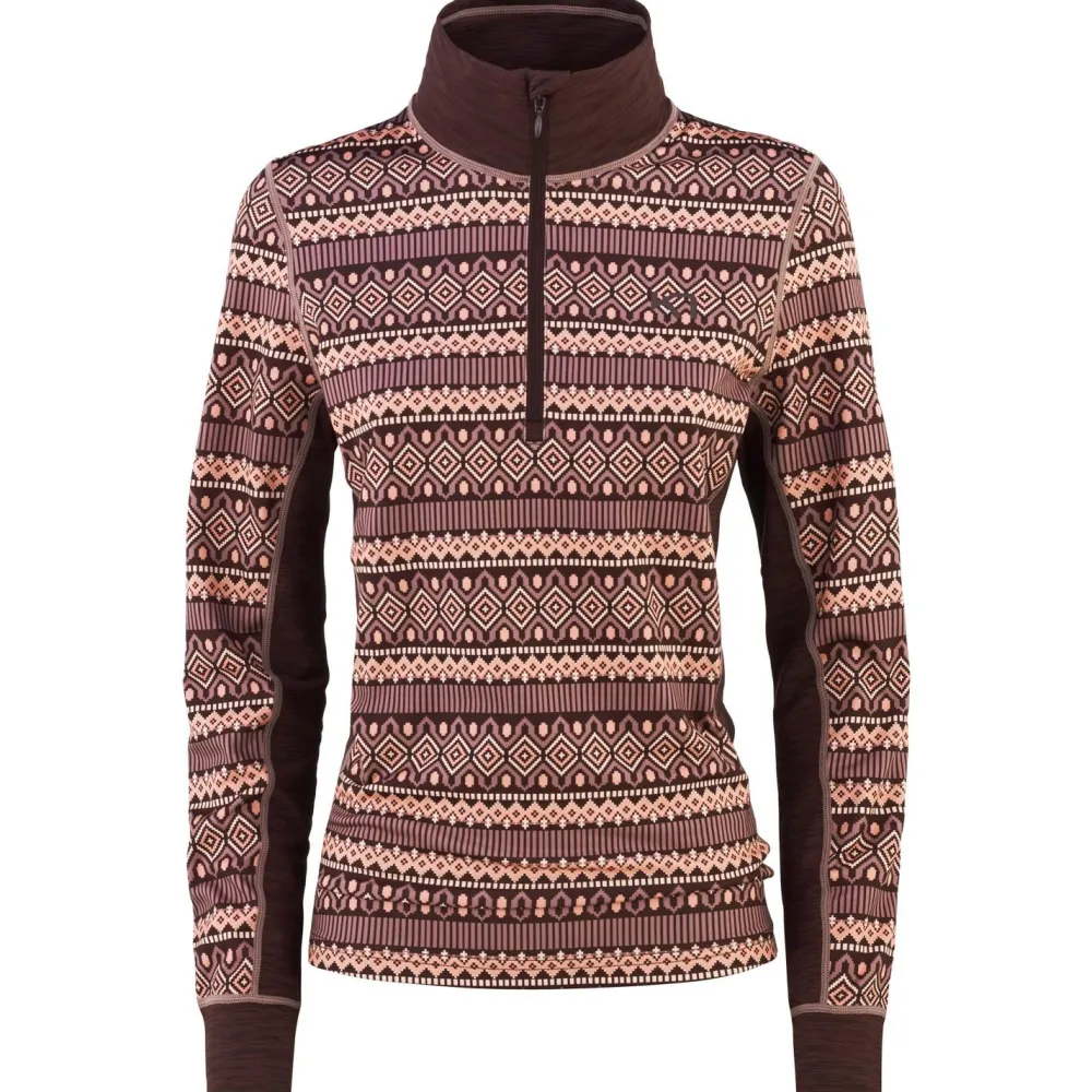 Der Baselayer Women’s Lune Halfzip von Kari Traa ist eine durchdachte Kombination aus recyceltem Polyester und Elasthan. Das Material ist angenehm leicht, liegt weich auf der Haut und bietet durch den Stretch-Anteil eine gute Bewegungsfreiheit. Gerade bei Outdooraktivitäten wie Winterwandern, Langlaufen oder Skifahren ist das ein echter Pluspunkt. Der Stoff ist atmungsaktiv, was bedeutet, dass Du auch bei schweißtreibenden Touren ein angenehmes Körperklima behältst. Besonders praktisch: Der halblange Reißverschluss am Kragen sorgt für zusätzliche Belüftung, wenn es mal etwas wärmer wird.