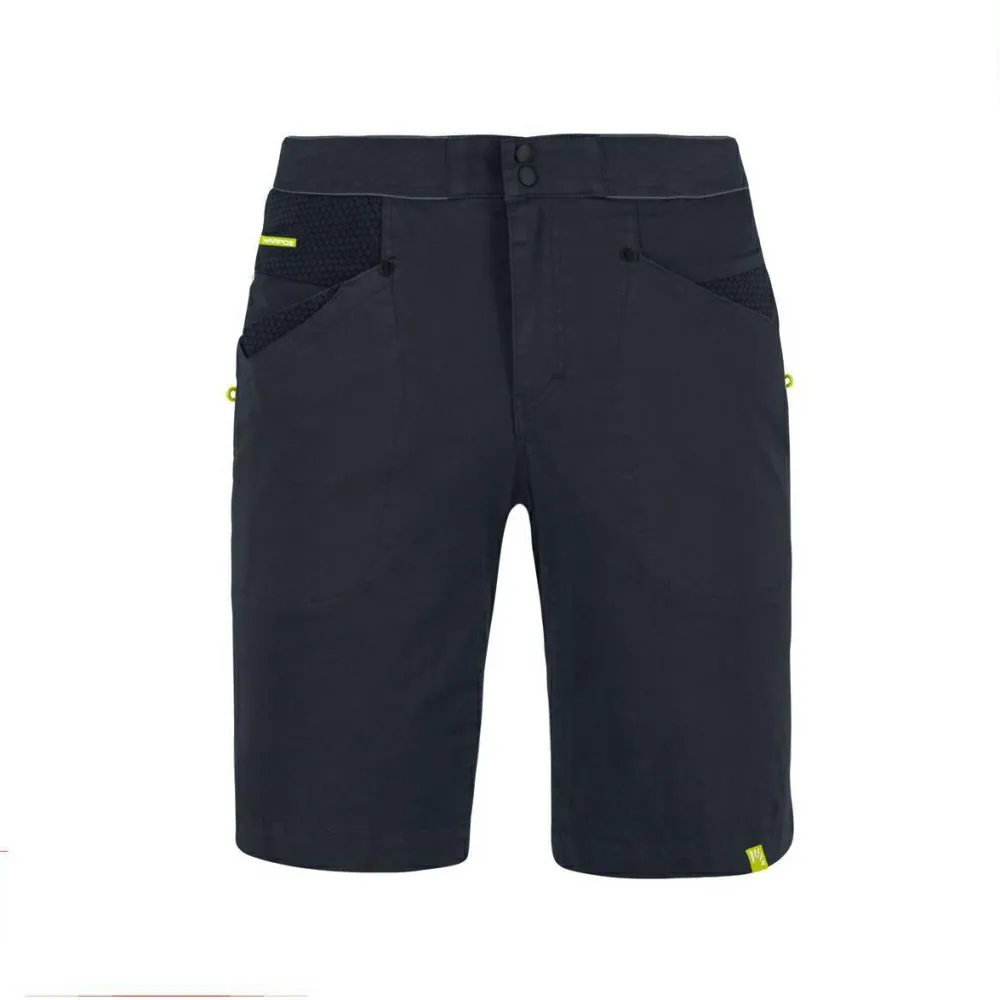 Mit der Noghera Bermuda hat Karpos eine robuste Shorts im Programm, die sich für die Freizeit ebenso gut eignet wie für das tägliche Training in der Kletterhalle.Die kurze Hose besteht aus strapazierfähiger Baumwolle und elastischer Kunstfaser. Durch das weiche Stretchgewebe eignet sich die kurze Kletterhose ideal zum Klettern und Bouldern, egal ob draußen oder in der Halle. Insgesamt vier Taschen bieten im Alltag und auf dem Weg zur Kletterroute viel Stauraum. Durch das modische Design kann die Hose auch im täglichen Einsatz getragen werden.Der elastische Bund sorgt für eine komfortable Passform beim Klettertraining mit der Noghera Bermuda Shorts von Karpos.
