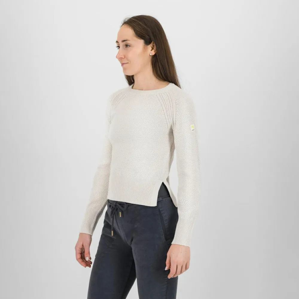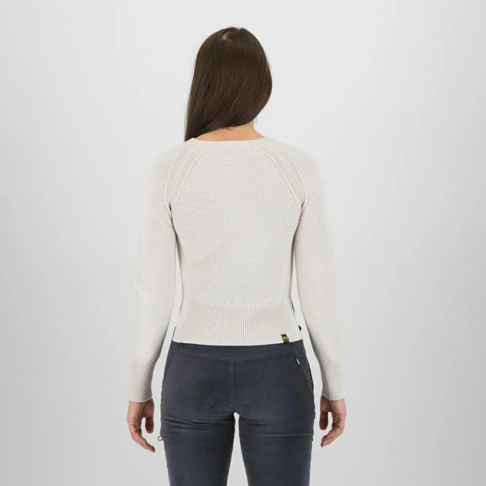 Der Women’s Ermellino Crewneck Sweater von Karpos ist ein warmes und komfortables Sweatshirt für den aktiven Winter. Sein äußerst komfortabler und natürlich funktionaler Materialmix aus Wolle und Acryl wird ergänzt durch einen sportlich-ergonomischen Schnitt mit Rundhalsausschnitt. Die Wolle hemmt die Entstehung von Gerüchen und sorgt für Wärme sowie angenehmen Temperaturausgleich bei starker Aktivität. Der Acryl-Anteil macht das Gewebe formstabil und hemmt die Entstehung von Fusseln, ohne den angenehm weichen Griff der Wolle zu beeinträchtigen.