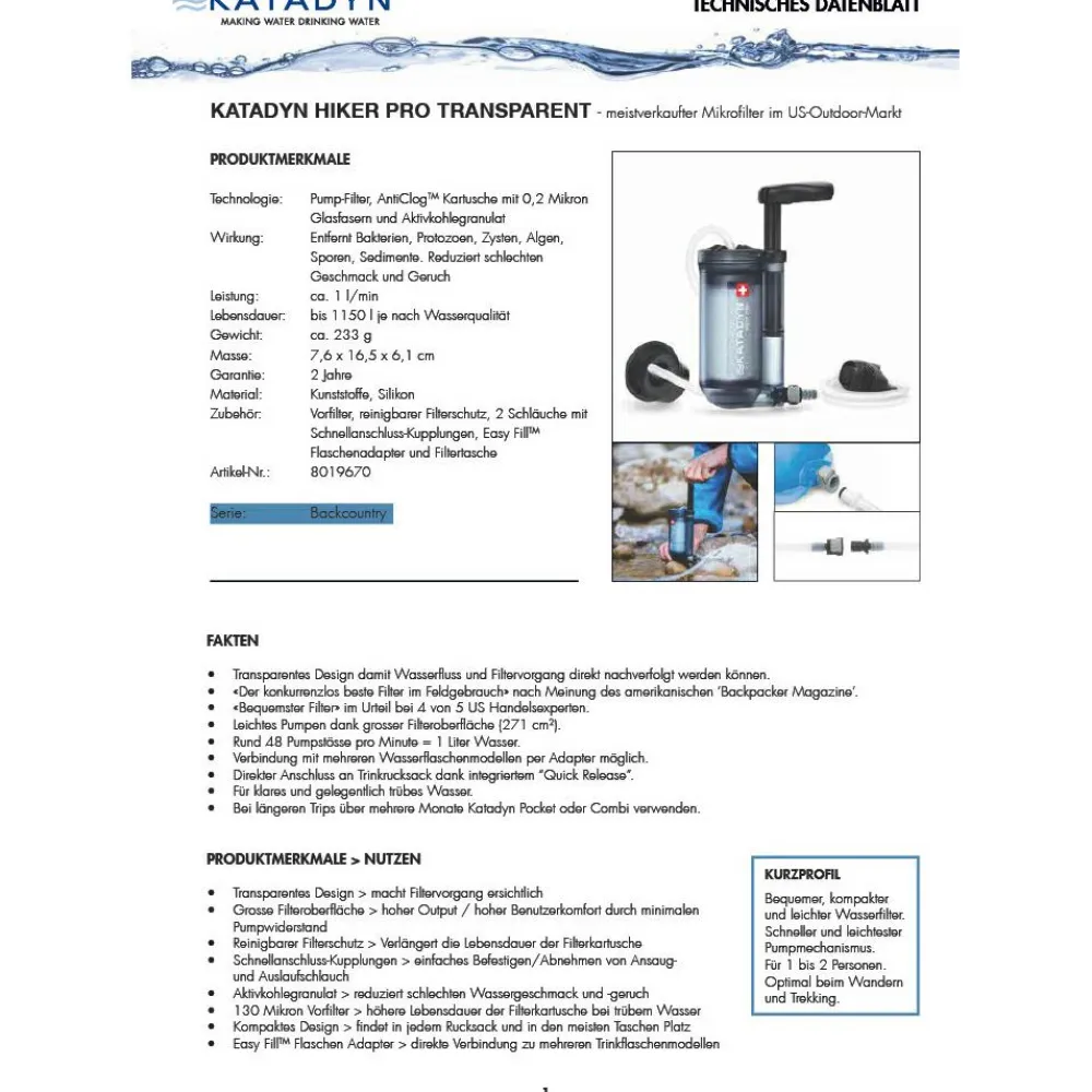 Wenn auf Tour der Platz im Rucksack mal wieder knapp wird und jedes Gramm den Ausschlag gibt – dann sollte man dem Hiker Pro von Katadyn den Vorzug gegenüber allen anderen Wasserfiltern geben. Dabei steckt in seiner kompakten Bauart Technik vom Feinsten und macht ihn zum idealen Begleiter im Backcountry. Für sichere Wasseraufbereitung und wohlschmeckende Erfrischung to go.