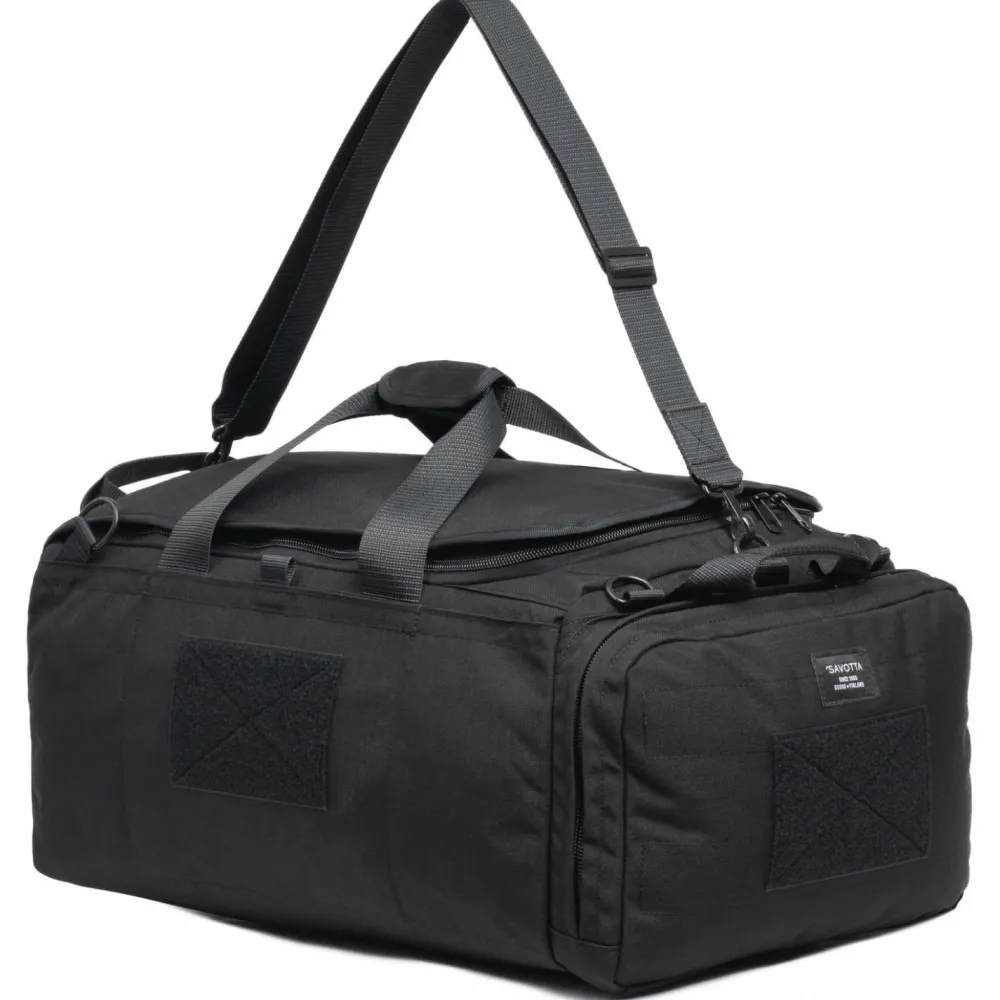Enorm vielseitig, komfortabel und unverwüstlich: die Keikka 50 Reisetasche von Savotta! Diese modular aufgebaute Duffelbag genügt in Sachen Robustheit den Standards des finnischen Militärs und ist für den intensiven Gebrauch bei Arbeit, Sport und Reise entworfen. Sie bietet diverse Tragemöglichkeiten mit Griffen, Schultergurt, Verladeschlaufen und Befestigungspunkten für Rucksack-Tragegurte. Innen und außen befinden sich Taschen und Fächer plus weitere Möglichkeiten zum Einkletten und Einhaken von Zubehör. Dadurch lässt sich jede Art von Gepäck nahezu perfekt schützen und ordnen. Zu den kleinen aber feinen Details der Keikka 50 Reisetasche gehören robuste Stahlschnallen, Laschen zur Befestigung von Ausweisen und Patches sowie die auswechselbare Polsterung im Deckel und im Boden!