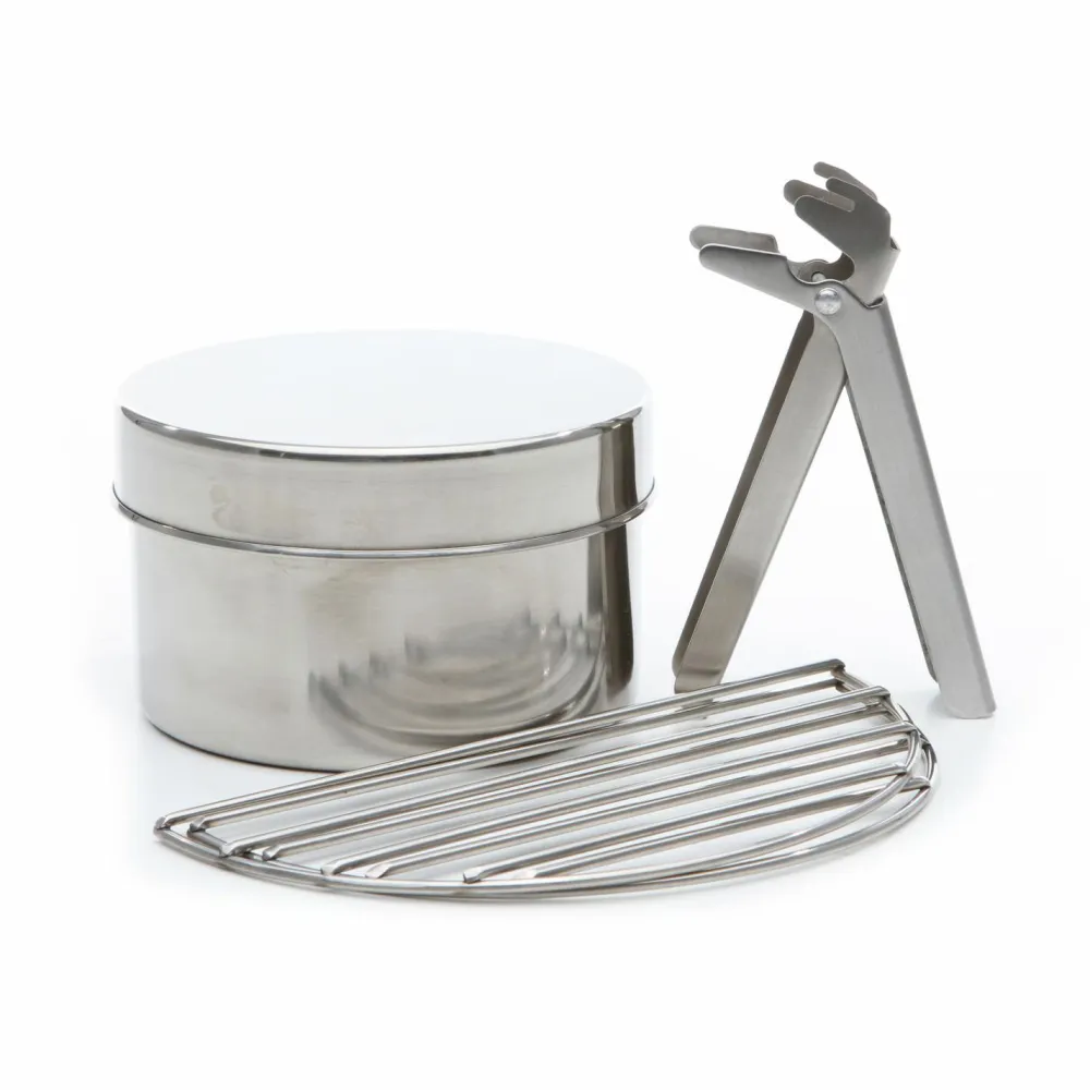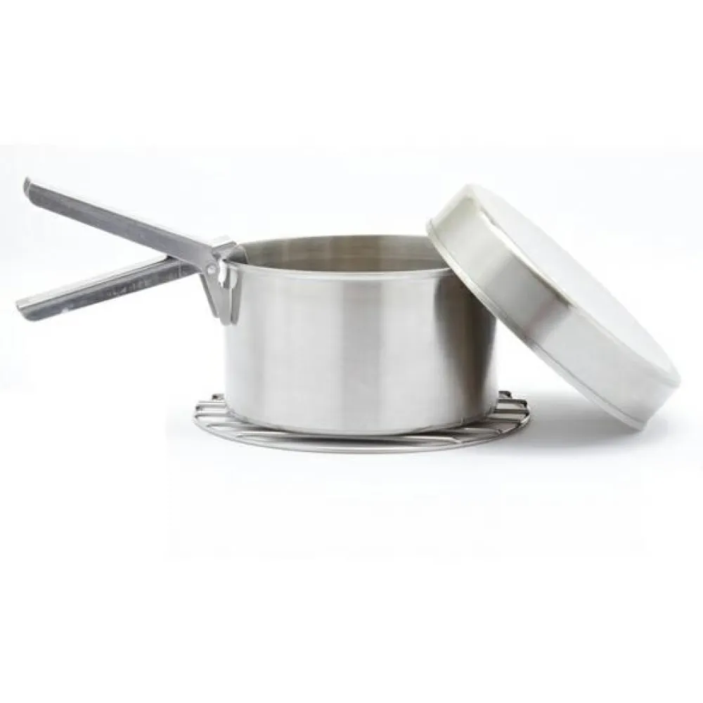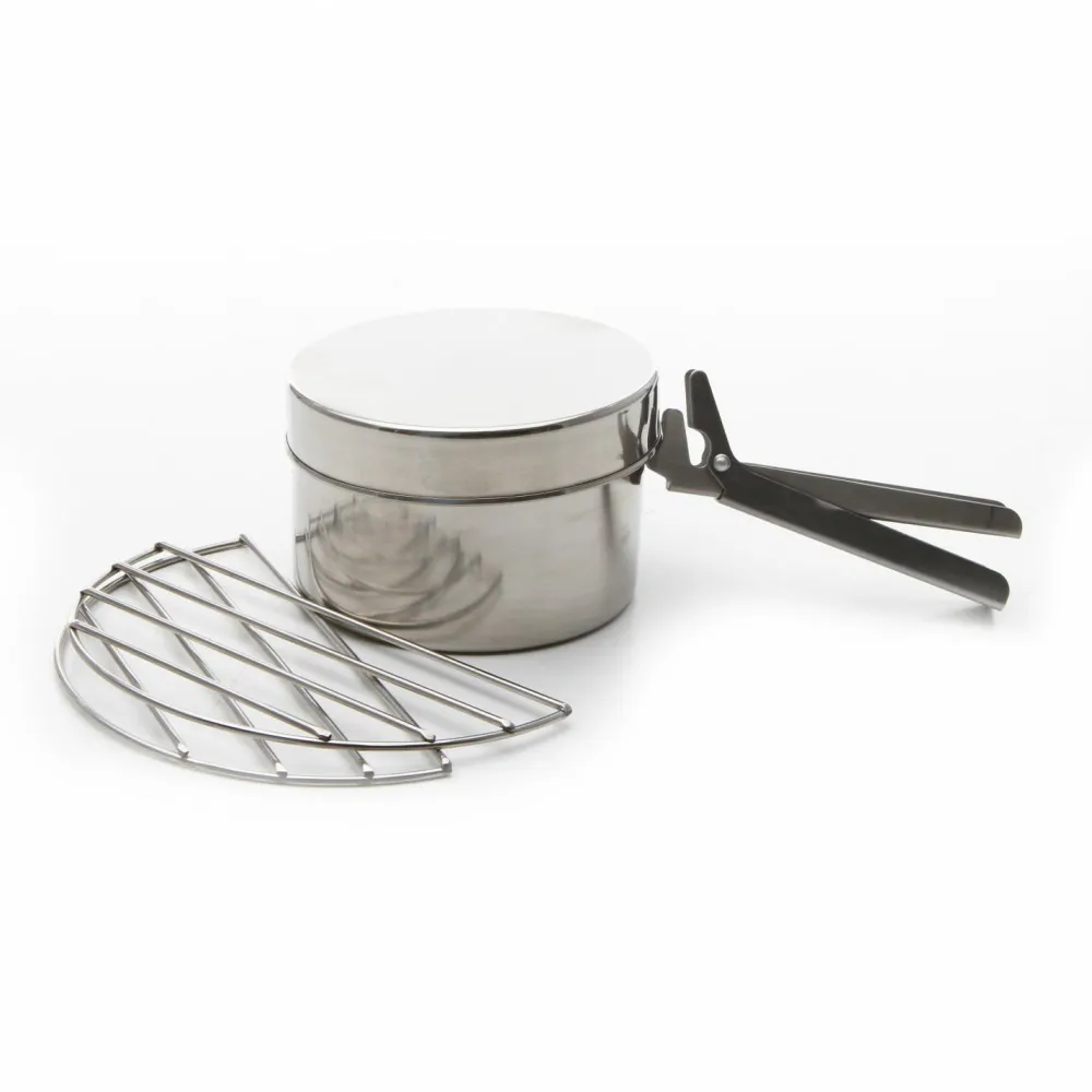 Das Cook Set Small von Kelly Kettle ist ein praktisches und kompaktes Edelstahl-Kochset für die Trekking-Küche! Es enthält einen 0,45-Liter-Topf mit Greifer und einem Deckel, der auch als kleine Pfanne verwendet werden kann. Mit dem ebenfalls enthaltenen Grillrost kann das Cook Set Small auch auf dem offenen Feuer oder Grill zum Einsatz kommen!