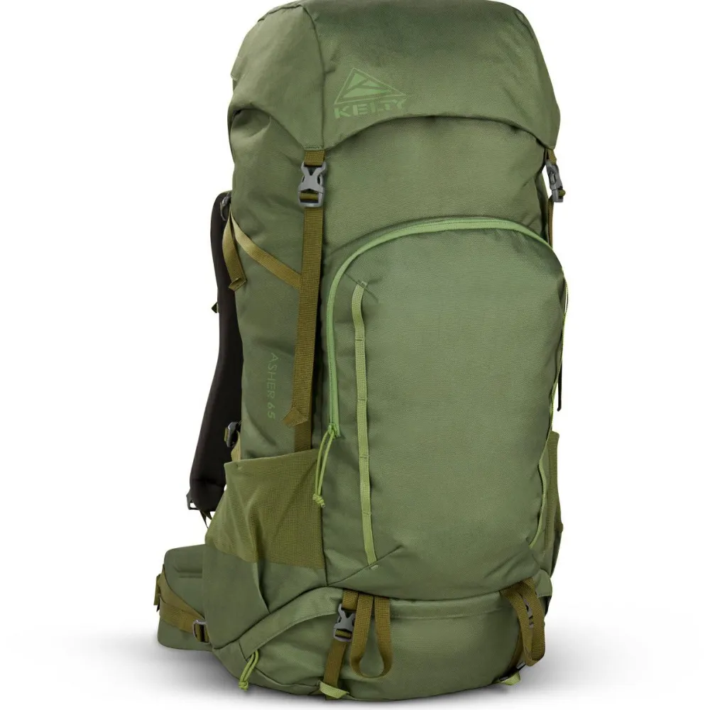 Der Asher 65 von Kelty ist ein geräumiger und komfortabler Begleiter für den Trail! Der Trekkingrucksack besteht aus langlebigem Oxford-Polyester und ist mit einer PFC-freien DWR-Imprägnierung versehen, die Schutz vor Nieselregen bietet. Mit seinem Volumen von 65 Litern bietet der Rucksack großzügigen Stauraum für Kleidung, Proviant und allerlei Kleinkram. Für den Schlafsack ist ein Extrafach mit Reißverschluss vorhanden und an der Front befindet sich zusätzlich ein großes Reißverschlussfach, das weitere Verstaumöglichkeiten bietet. Die zwei seitlichen Netztaschen bieten Platz für Trinkflaschen, während das Smartphone griffbereit in einer Tasche am Hüftgurt aufbewahrt werden kann.