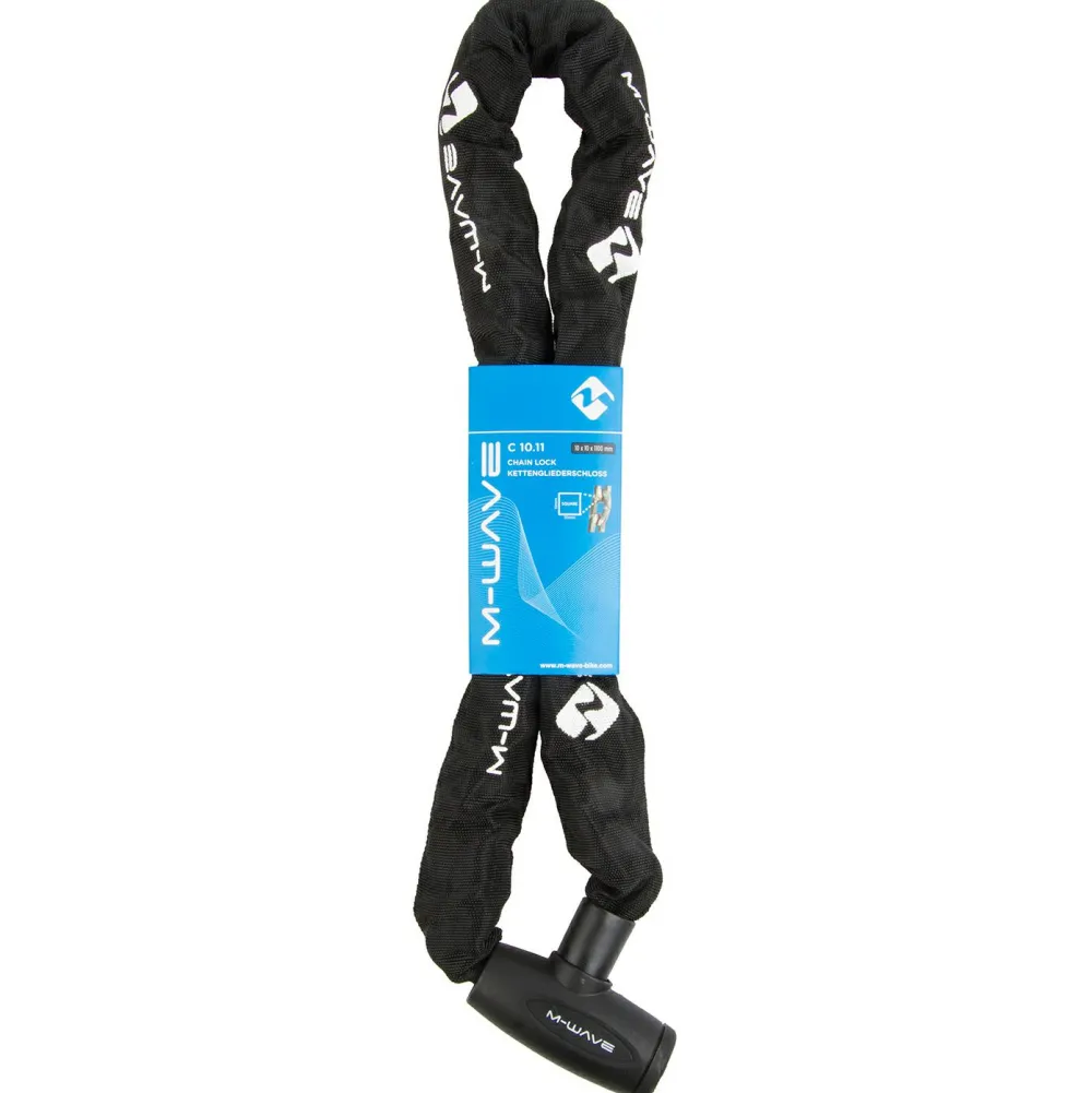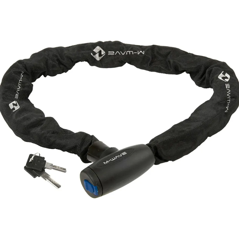 Das Kettenschloss C 10.11 von M-Wave schützt Dein Bike verlässlich vor Diebstahl. Es verfügt über einen Schließzylinder mit Staubschutzkappe und lässt sich automatisch verriegeln. Die hochwertige und stabile Kette ist zudem mit einer schützenden Textilhülle umgeben. Ein Fahrradschloss, das für absolute Sicherheit steht.