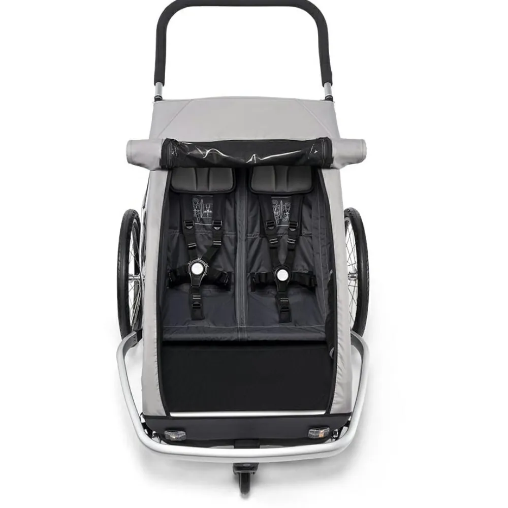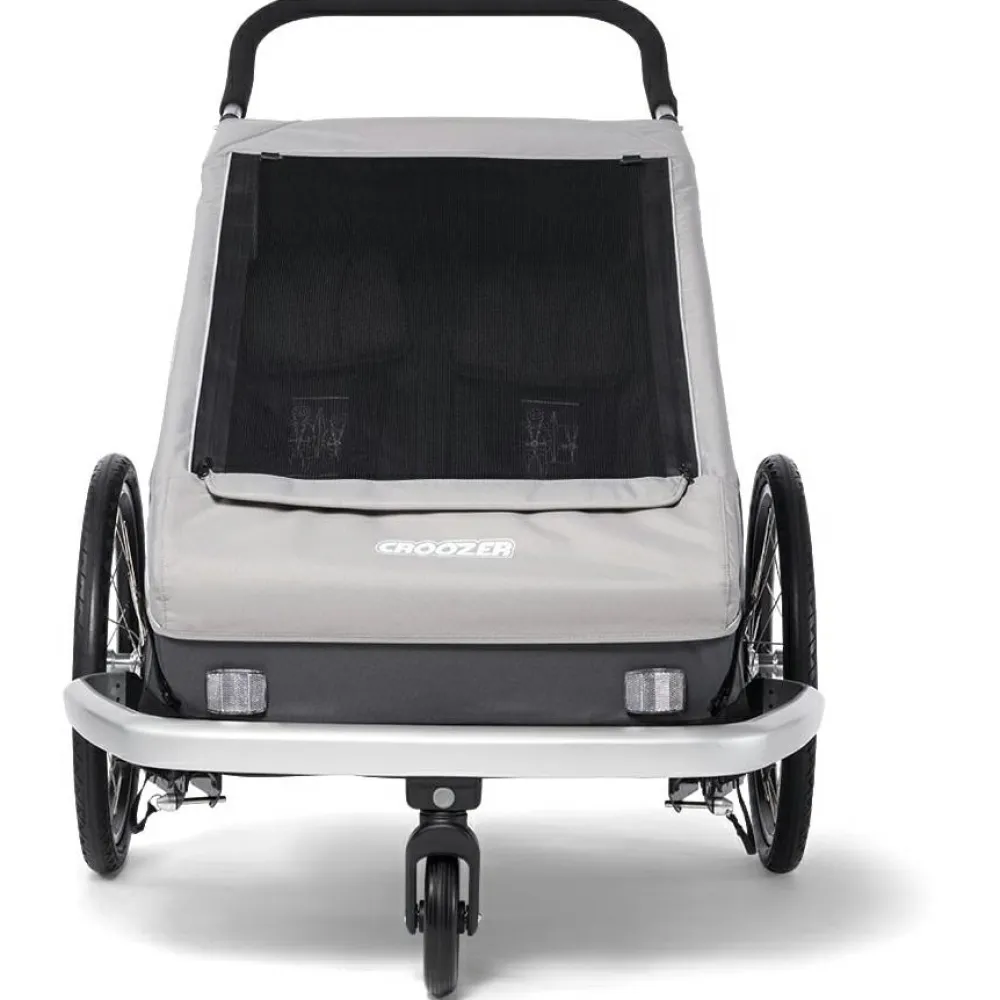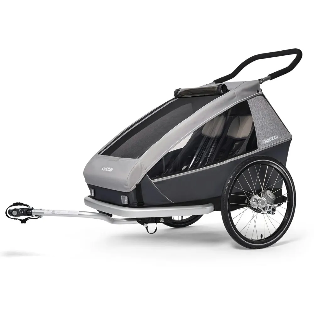 Der Kid Keeke 2 von Croozer ist ein robuster, komfortabler Kinderanhänger mit einem tollen Design. Er bietet Platz für zwei Kinder und kann eine Gesamtlast von bis zu 45 Kilogramm befördern. Er besitzt viele praktische Features von denen die Federung als Erstes heraussticht. Den die AirPad Federung passt sich automatisch dem Gewicht des Anhängers an und sorgt für eine zuverlässige Dämpfung und Federung. So ist eine sanfte und sichere Fahrt für den Nachwuchs garantiert. Damit der Nachwuchs während der Fahrt optimal geschützt ist, ist die Fahrgastzelle besonders robust und mit einem 5-Punkt-Sicherheitsgurt ausgestattet. Zudem sorgt der breite Radstand und der niedrige Schwerpunkt des Anhängers für eine sichere und spurstabile Straßenlage. Um die Räder zu schützen sind robuste Stoßfänger am Anhänger montiert, welche gleichzeitig als praktischer Fixpunkt für das Anschließen mit einem Fahrradschloss dienen.