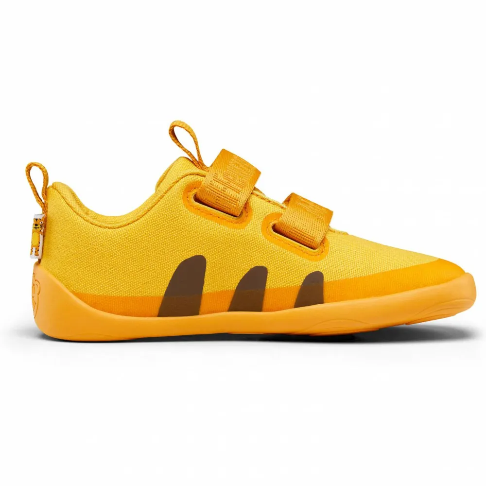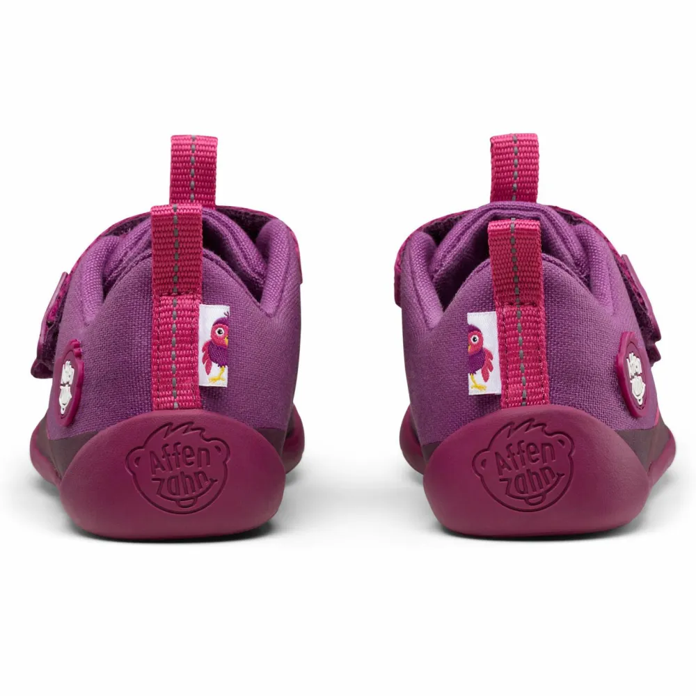 In die Entwicklung der Schuhe hat Affenzahn viel Grips gesteckt. Oberstes Ziel: Füße wachsen lassen, ohne einzuengen. Daher die dünne Sohle und die geräumige Zehenbox. Das Obermaterial aus Bio-Baumwolle ist mit einem schmalen, wasserdichten Streifen versehen. Dadurch bleiben die Füße auf feuchtem Untergrund trocken. Dank der Reflektoren auf der Anziehschlaufe und der Schuhzunge leuchtet der Baumwolle Lucky im Scheinwerferlicht. Eine tolle Idee ist die Links-Rechts-Unterscheidung. Ein zweigeteiltes Tierbildchen an der Ferse ergibt ein ganzes, wenn die Schuhe richtig stehen. Dank der fest vernähten Sohle verfangen sich keine Steinchen und Sandkörner.