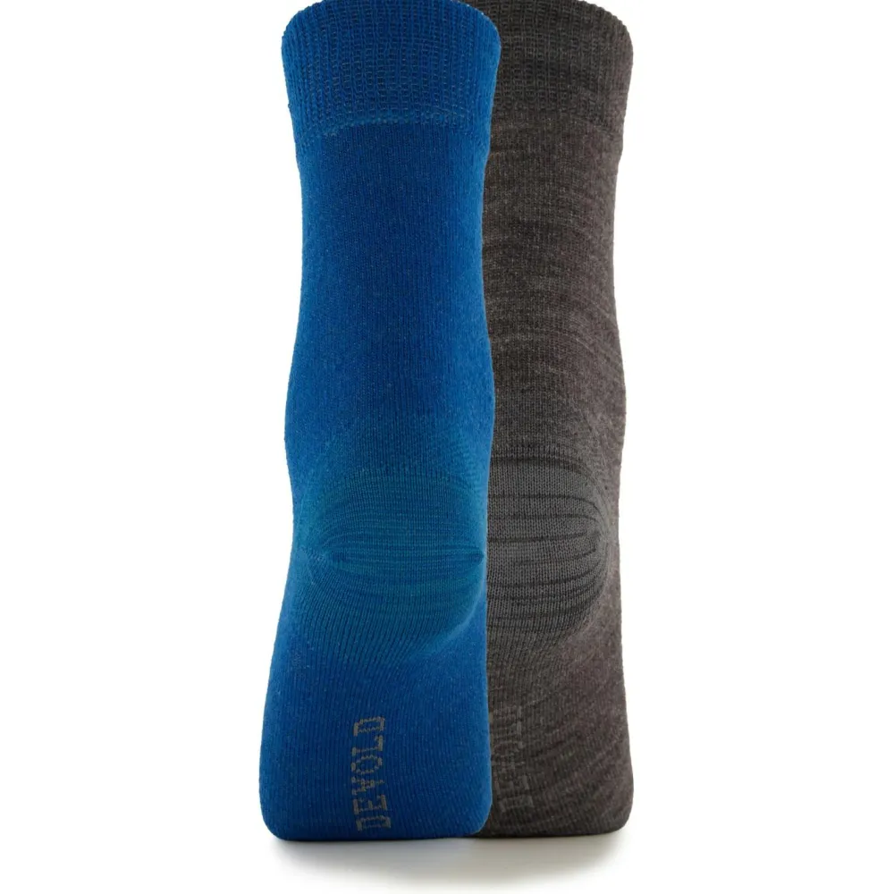 Die hier im 2er-Pack angebotenen Kid’s Daily Merino Light Socken von den norwegischen Woll-Spezialisten von Devold sind genau das, was ihr Name verspricht: leichte, angenehme Alltagssocken, mit 50% Merinowolle, sodass Deine lieben Kleinen von deren positiven Eigenschaften profitieren, und dann noch einem Kunstfaseranteil, der die Strümpfe strapazierfähig und pflegeleicht macht. Da die Socken vergleichsweise dünn sind, eignen sie sich eher für mildere Temperaturen.
