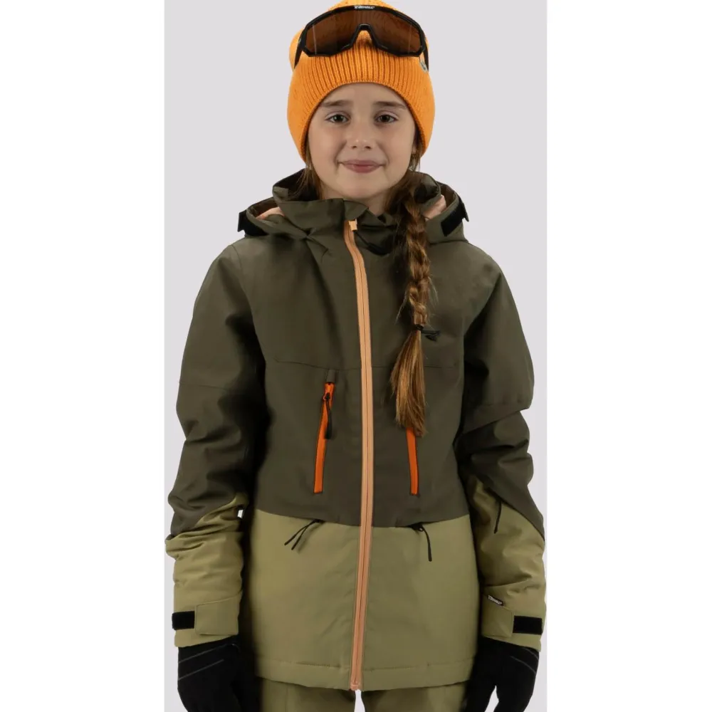 Die Kid’s Helga Skijacke von Rehall ist mit wattierter Kunstfaser warm gefüttert. Das wetterfeste Obermaterial ist absolut wasserdicht und widersteht mühelos einer 20000 mm Wassersäule. Die komplette Jacke ist dafür aus recyceltem Polyester gefertigt. Mit hohem Kragen und einstellbarer Kapuze wärmt die sportliche Winterjacke auch Kopf- und Halsbereich sehr gut. Die warme und wetterfeste Skijacke ist außerdem mit einem integrierten Schneefang ausgestattet und verfügt über elastische Innenbündchen und einstellbare Ärmelenden. Neben den beiden Brusttaschen mit Reißverschluss steht für den Liftpass eine extra Tasche am Ärmel parat. Die Nähte der Hardshelljacke sind von innen versiegelt, so dass weder Regen noch Schnee in die Jacke eindringen können.