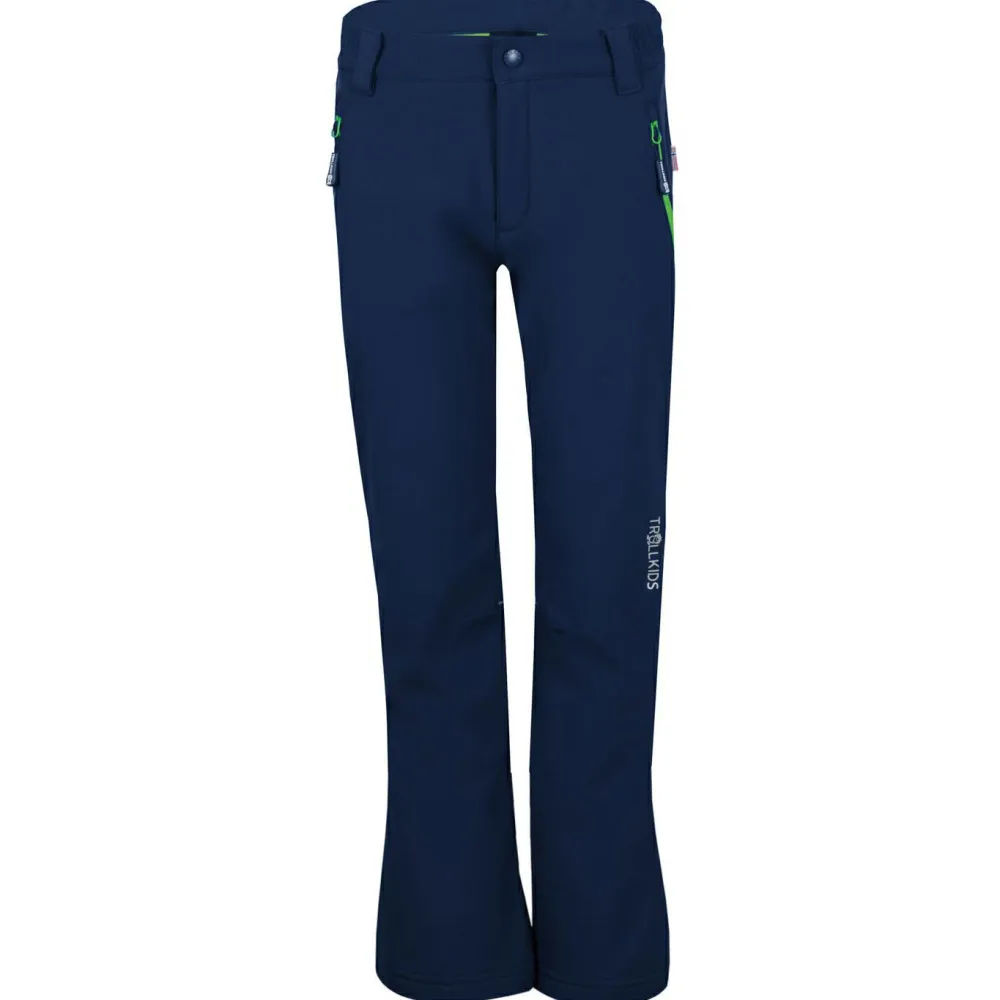 Die ist zu jedem Abenteuer bereit: wenn es nach draußen geht, ist die Kid’s Hemsedal Softshell Pant von Trollkids sofort am Start!Die Softshellhose ist aus einem robusten, wasser- und windabweisenden und leicht dehnbaren Polyester-Gewebe gefertigt und speziell auf aktive Touren ausgelegt. Zusammen mit dem sportiven Schnitt sind so einschränkungsfreie und bequeme Touren vorprogrammiert. Zwei mit softem Fleece gefütterte Zip-Hosentaschen gewähren ausgekühlten Händen ein kuscheliges Obdach und packen nebenbei alle wichtigen Kleinigkeiten weg. Die Beinabschlüsse sind in ihrer Weite per Klettverschluss-System anpassbar und erleichtern so das An- und Ausziehen. Integrierte Gamaschen verhindern, dass Dreck, Schmutz und Schnee von unten in das Innere der Hose wandern. Auf geht’s!