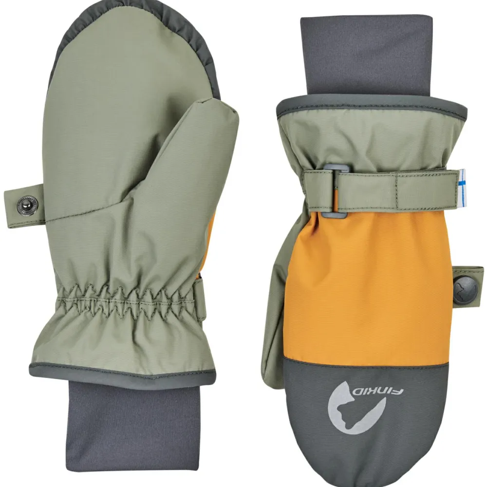 Halten Kinderhände warm: Die Kid’s Kirjava von Finkid! Die Fäustlinge sind mit einer wärmenden Kunstfaserisolierung und einer wasser– und winddichten Membran ausgestattet und halten so sowohl Kälte als auch Nässe zuverlässig draußen. Damit an den Nähten kein Wasser eindringen kann, sind diese versiegelt. Das Obermaterial besteht aus recyceltem Material und ist PU-beschichtet, wodurch ein zusätzlicher Wasserschutz entsteht.