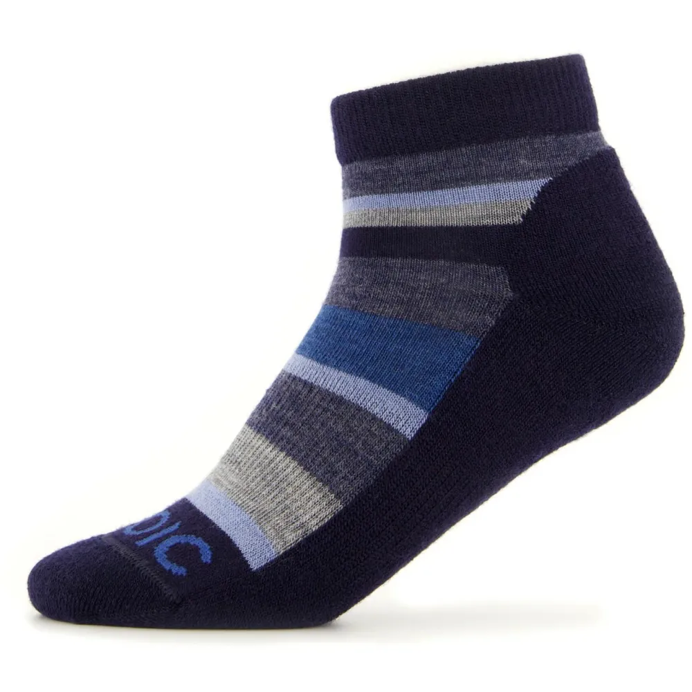 Du suchst nach Socken, die Deinen Kindern bei ihren Outdoor-Abenteuern optimalen Komfort und Schutz bieten? Die Stoic Kid’s Merino Trekking Quarter Socks Striped sind genau das Richtige! Der Mix aus Merinowolle und Kunstfaser sorgt für ein angenehmes Tragegefühl und optimale Feuchtigkeitsregulierung. Egal ob beim Wandern oder auf Reisen, diese Socken sind ideal für kleine Abenteurer.