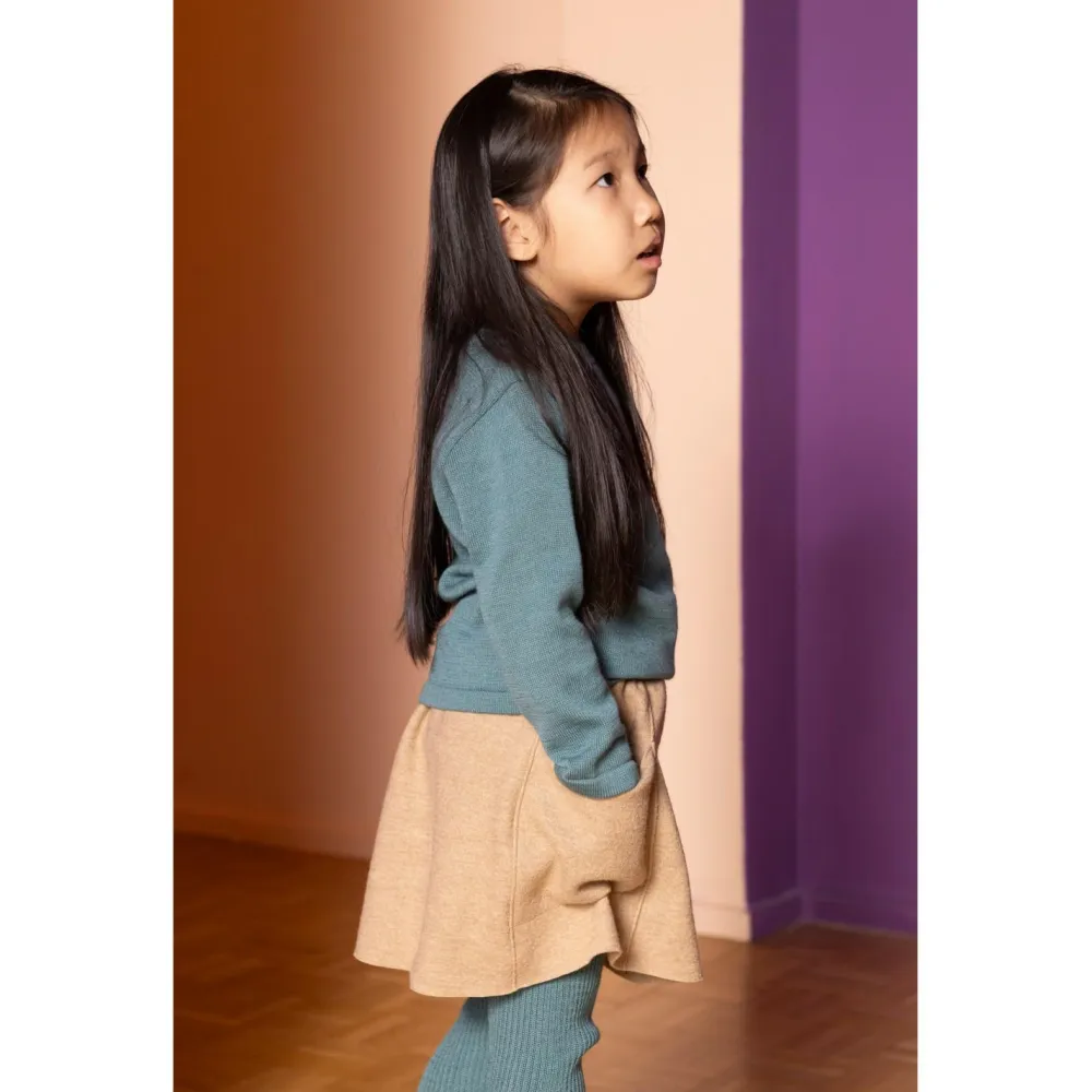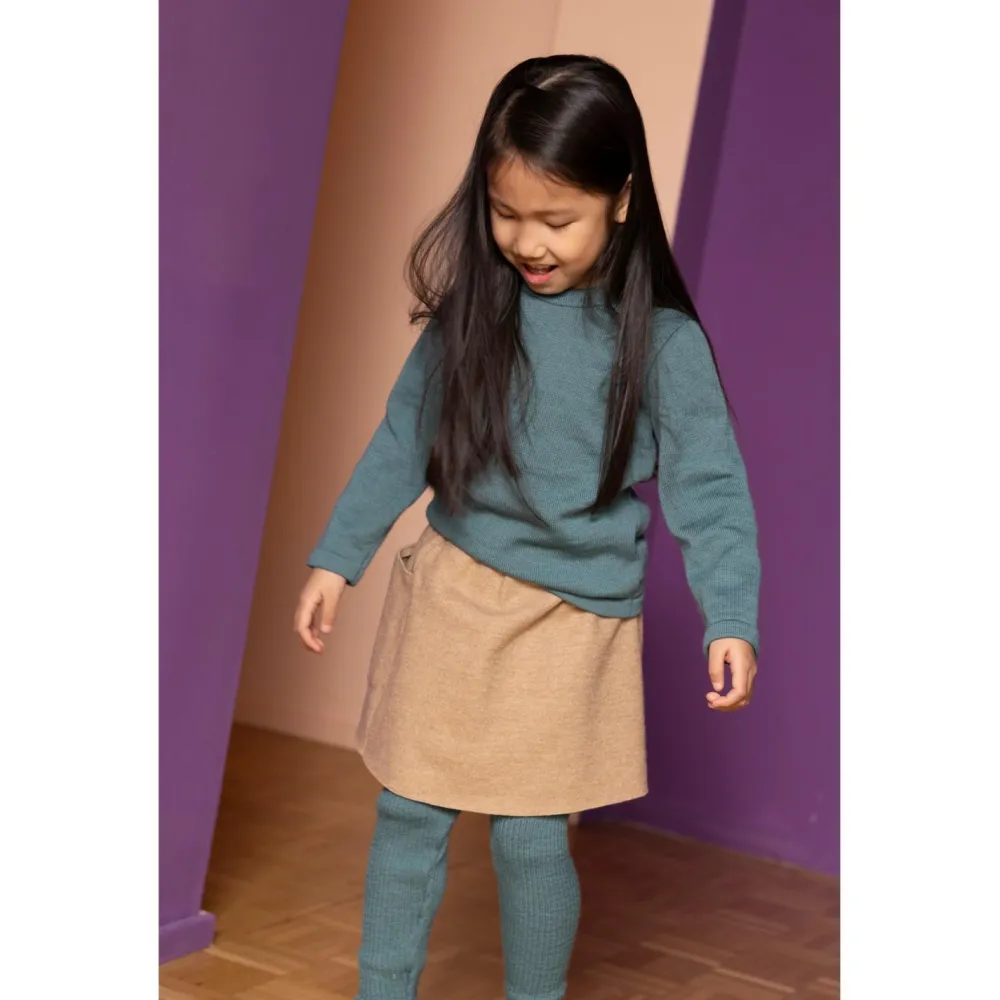 Reinschlüpfen, wohlfühlen und dabei noch richtig süß aussehen – der Kid’s Walk-Rock von disana lässt Mädchenaugen strahlen. Er besteht aus 100 % reiner Schurwolle aus kontrolliert biologischer Tierhaltung und wurde in Deutschland hergestellt. Das Material liegt angenehm weich auf der Haut und kratzt nicht, es ist zudem atmungsaktiv, temperaturregulierend und besonders robust. Der elastische breite Strickbund ist unglaublich bequem und verhindert, dass der Rock verrutscht. Ob mit einer Leggings darunter oder nur für sich allein – einfach richtig cool.