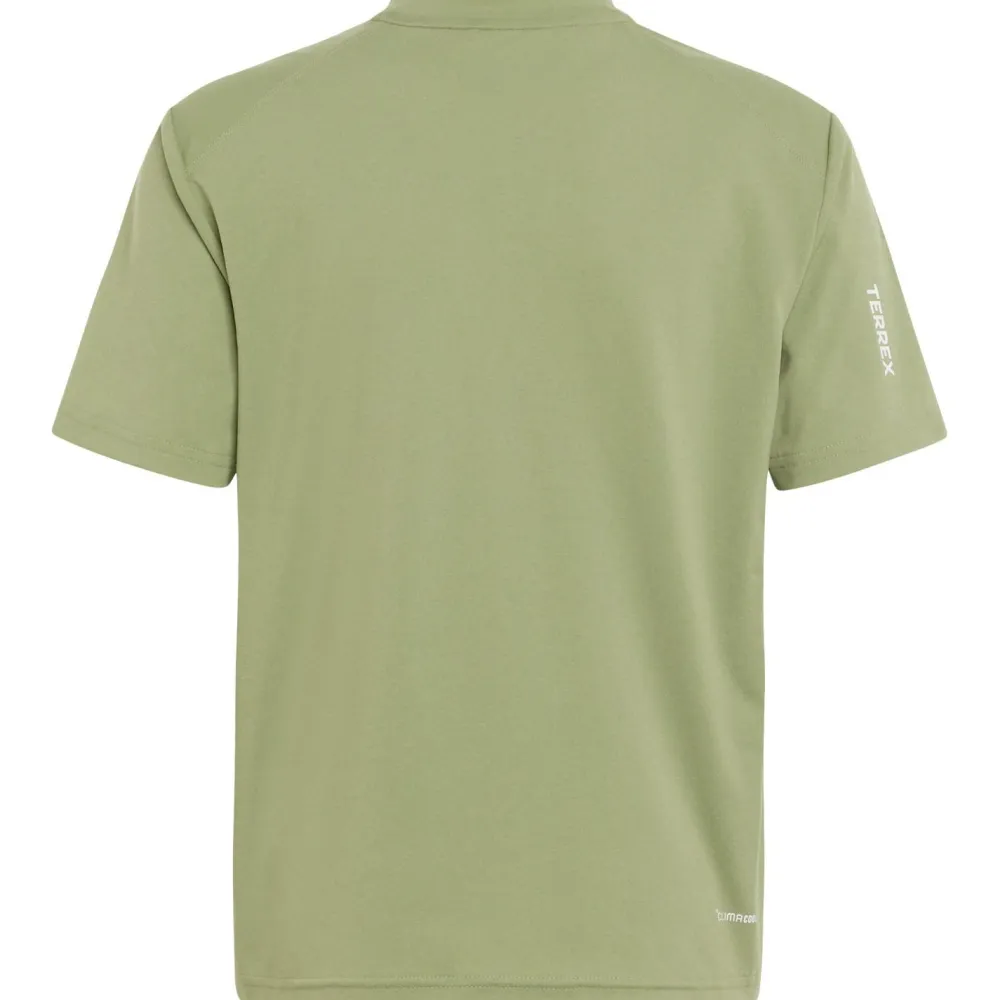 Das adidas Terrex Kid’s MT Tee bringt alles mit, was Eltern sich für ihre kleinen Outdoor-Fans wünschen. Dank der Climacool-Technologie bleibt Dein Kind auch an warmen Tagen beim Wandern angenehm kühl und trocken. Die spezielle Kunstfaser sorgt gemeinsam mit den Belüftungseinsätzen für eine optimale Luftzirkulation und leitet Feuchtigkeit zuverlässig ab – so fühlt sich das Shirt immer frisch an. Das atmungsaktive und stretchy Material engt nicht ein, sondern schenkt ein rundum angenehmes Körperklima, selbst wenn es beim Wandern mal etwas anstrengender wird.
