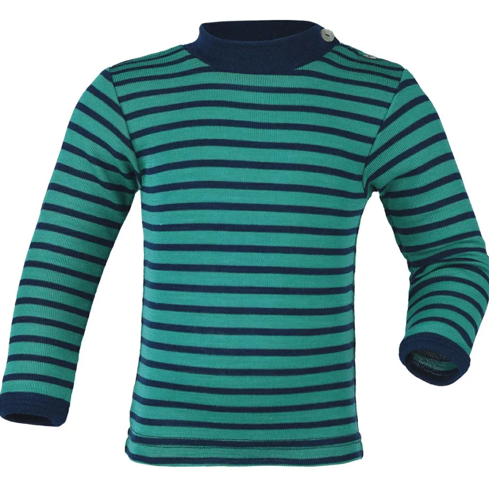 Das Baby-Shirt L/S geringelt von Engel ist ideal für die kalten Wintermonate. Es hält schön warm und trägt sich dank der Materialkombination aus Schurwolle und Seide äußerst angenehm. Darüber hinaus bringt Schurwolle atmungsaktive sowie geruchshemmende Eigenschaften mit sich. Der Stehkragen ist praktisch, denn er hält den Halsbereich warm, sodass keine Zugluft dort hingelangt. Und für eine tolle Optik sorgt das geringelte Muster. Einfach nur toll!