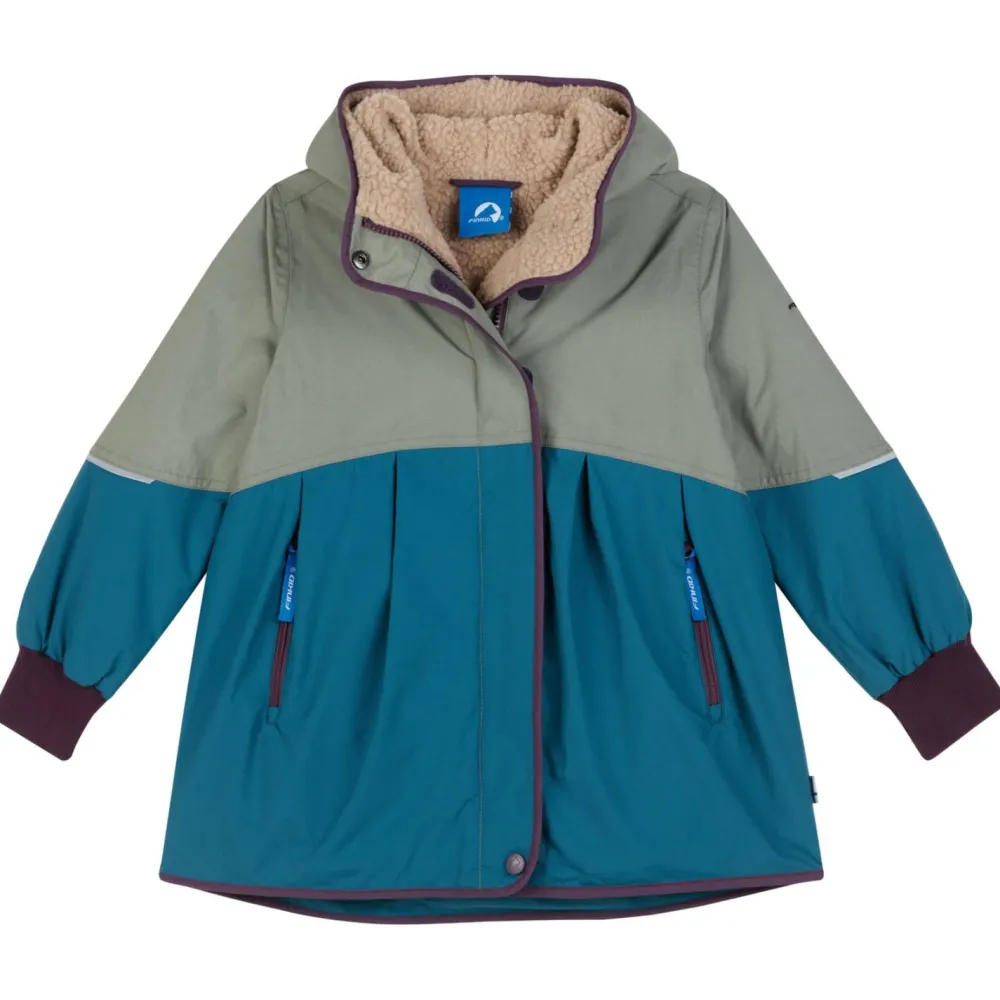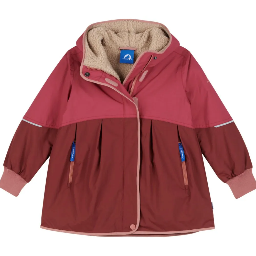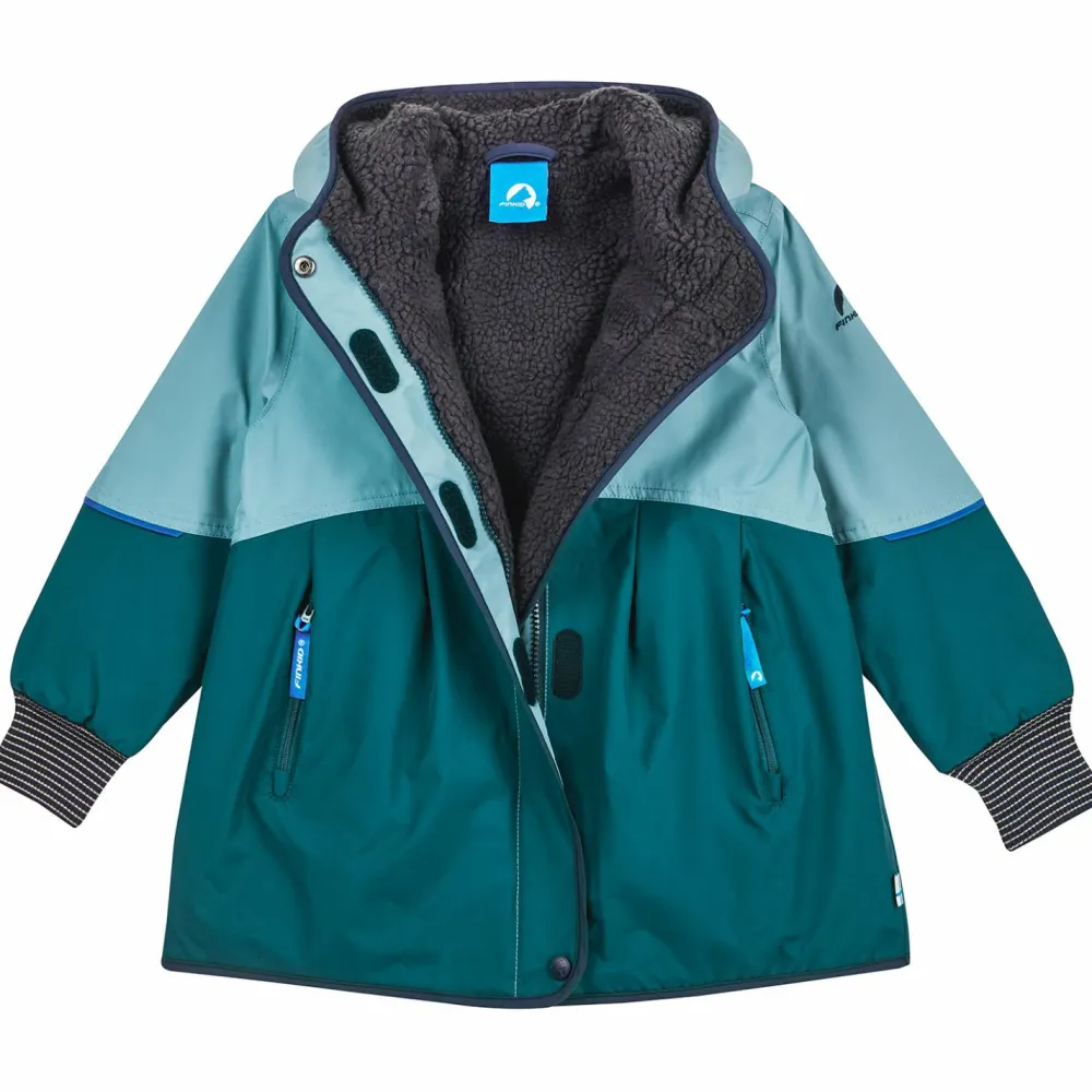 Eine schöne warme Jacke für Schmuddelwetter findet sich mit der Kid’s Aina Mukka von Finkid. Das isolierende Material hält den Körper bei Kälte angenehm warm. Bei Regen und Schnee verhindern das wasser- und schmutzabweisende Material sowie versiegelte Nähte das Eindringen von Nässe. Zudem sorgt die atmungsaktive Eigenschaft dafür, dass sich im Inneren entstehende Feuchtigkeit nicht ansammelt.