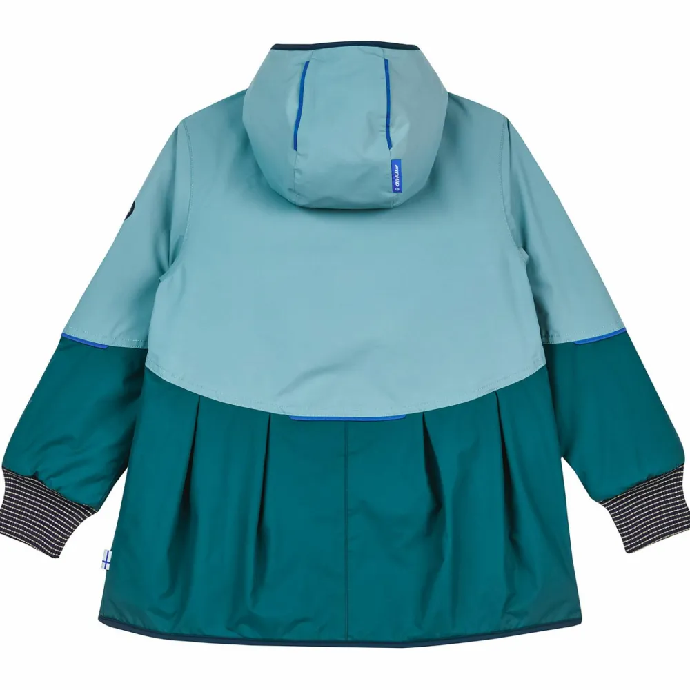 Bei Bedarf kann die Kapuze schnell über den Kopf gezogen und das Auskühlen von oben verhindert werden. Elastische Bündchen an den Ärmeln passen sich individuell an die Handgelenke an und lassen kalte Zugluft nicht ins Innere passieren. In zwei Fronttaschen findet sich Platz für wichtigen Kleinkram. Hergestellt aus umweltfreundlichen Materialien schützt die Kid’s Aina Mukka von Finkid empfindliche Kinderkörper vor Wind und Wetter.