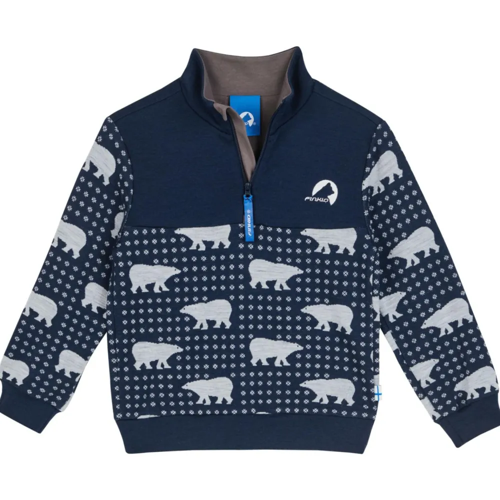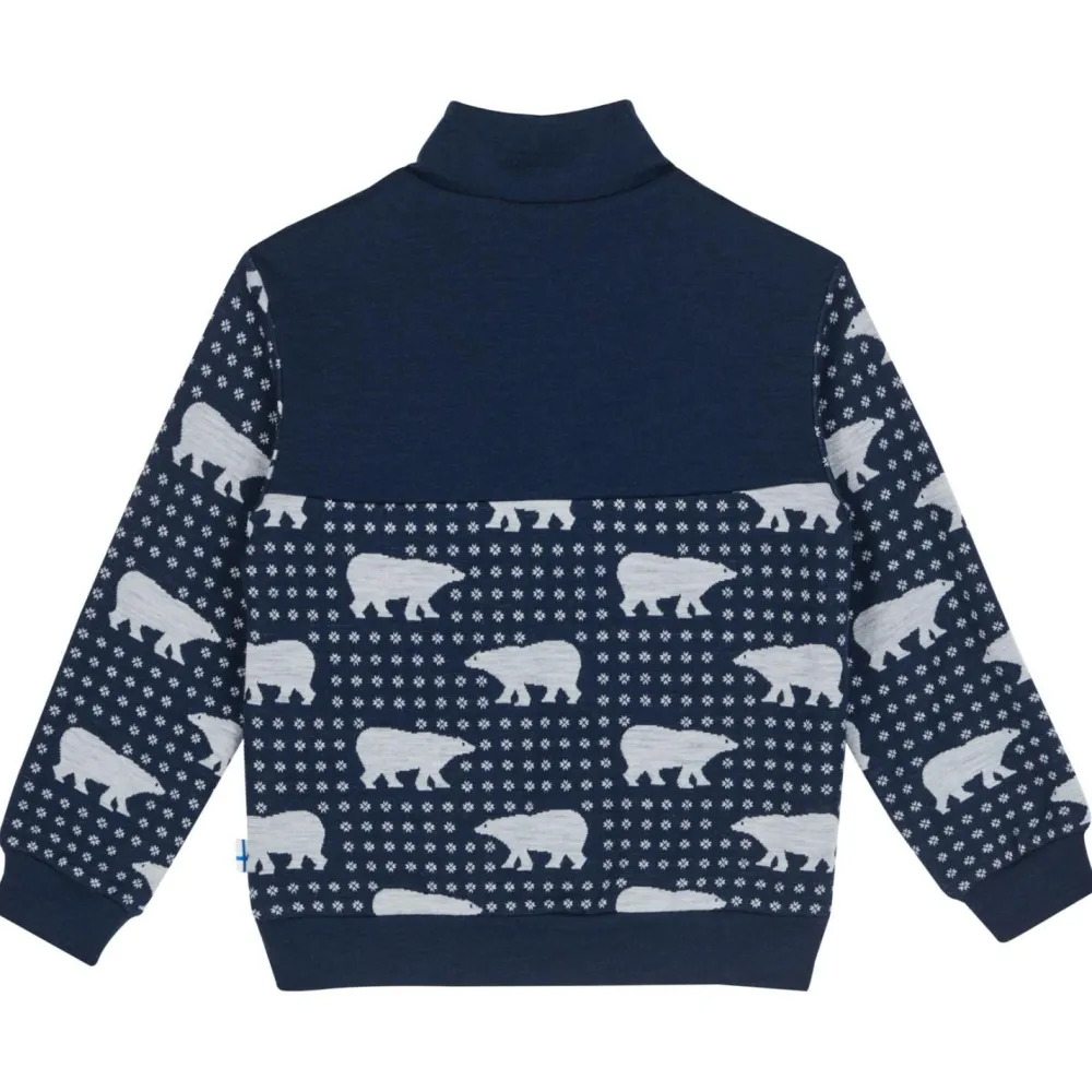 Die Kombination aus weicher Baumwolle, widerstandsfähiger Kunstfaser und wärmender Wolle macht diesen Pullover zu einem echten Allrounder. Die Materialien sind nicht nur angenehm auf der Haut, sondern auch atmungsaktiv und temperaturregulierend – ideal für aktive Kinder, die sich gerne bewegen. Das nordische Bärenmuster bringt einen Hauch von Finnland in den Alltag Deines Kindes.