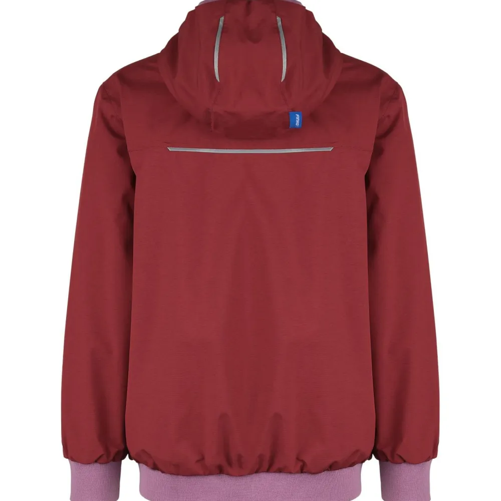 Die Jacke besteht aus strapazierfähigem, pflegeleichtem Material und ist mit einer hohen Wassersäule von 10.000 mm zuverlässig wasserdicht. Ab Größe 120/130 ist sie zusätzlich mit einer runden Kapuze ausgestattet, die den Wetterschutz weiter erhöht. Zwei Fronttaschen mit Reißverschluss bieten zudem sicheren Stauraum für wichtige Kleinigkeiten. Reflektierende Details sorgen dafür, dass die kleinen Jackenträger bei schlechten Lichtverhältnissen im Scheinwerferlicht besser gesehen werden.