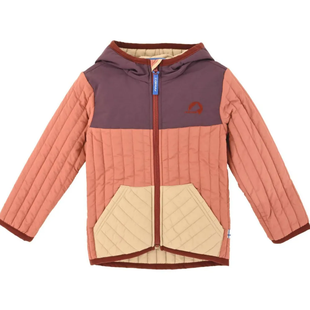 Die Kid’s Tonttu Air Kunstfaserjacke von Finkid ist vielseitig einsetzbar: Dein Kind kann sie an wärmeren Tagen in den Übergangsjahreszeiten einzeln tragen, sie lässt sich aber auch gut als Midlayer mit einer Hardshelljacke kombinieren. Die Kunstfaserfüllung besteht zu 100 % aus recyceltem Polyamid. Es wurde in kleinen, abgesteppte Kammern verteilt, sodass es an Ort und Stelle bleibt und Dein Kind dauerhaft und zuverlässig wärmt. Die Ärmel und der Saum wurden mit elastischen Abschlüssen versehen. Sie sorgen dafür, dass die Kunstfaserjacke auch bei ausgiebigem Toben zuverlässig sitzt und verhindern somit ein Eindringen von Kälte oder Wind.