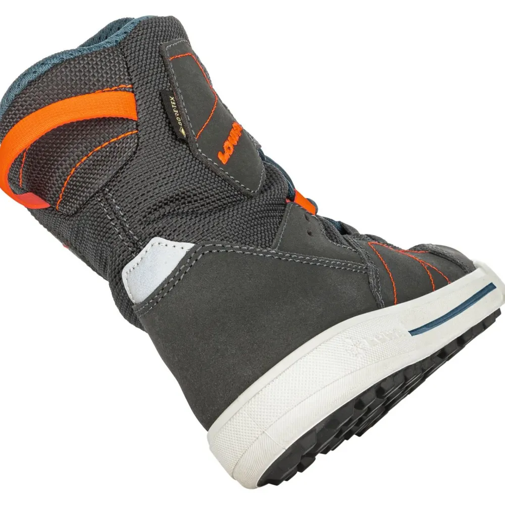 Die Lowa Laufsohle bietet mit ihren multidirektionalen Stollen einen zuverlässigen Grip bei winterlichen Bedingungen. Polsterungen an Fersen und Zehen optimieren den Komfort. Mit den Anziehschlaufen ist das Handling ganz einfach. Ein Allrounder für die kalten Tage, der Kid’s Raik GTX Hi Junior!