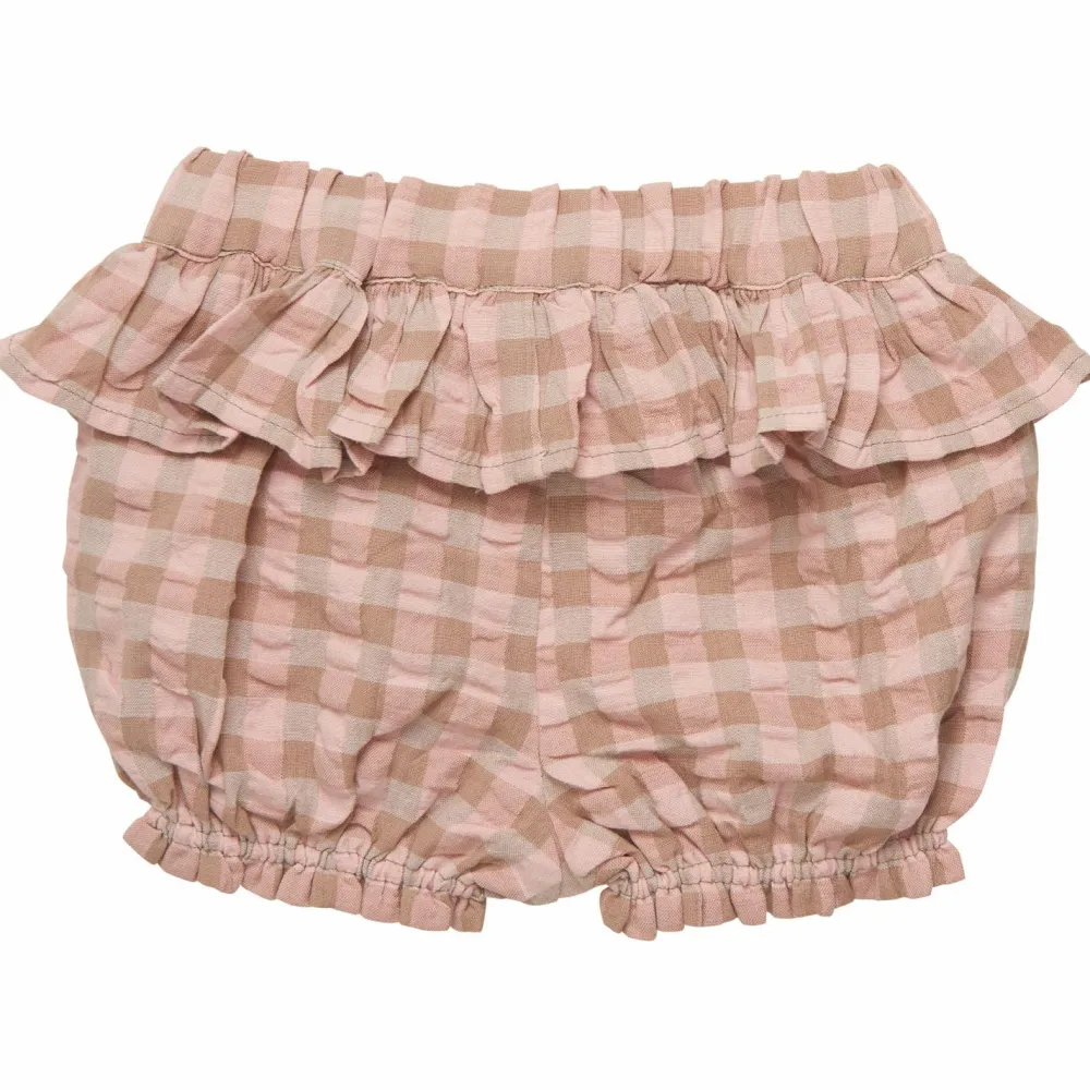 Ist sie nicht bezaubernd? Die Girl’s Shorts Check von Minymo. Die kurze Hose ist nicht nur unglaublich süß, sondern durch die Baumwolle fühlt sie sich unheimlich weich auf der Haut an und ist atmungsaktiv. Der elastische Hüftbund und die elastischen Bündchen an den Beinen schmiegen sich angenehm an und halten auch beim Krabbeln alles an Ort und Stelle. Das Karo-Muster und die Rüschen verleihen der Short einen gewissen Landhauslook und somit genial für die nächste Gartenparty im Grünen.
