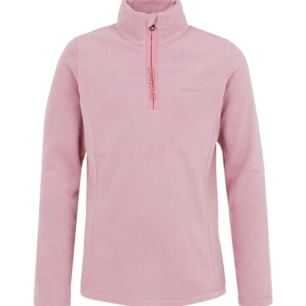 Die perfekte Schicht unter der Skijacke – der Girl’s Mutey JR 1/4 Zip Top von Protest ist ein fantastischer Microfleece-Pulli der auch an kühlen Tagen angenehm warm hält. Das Material leitet Feuchtigkeit ab, damit auch nach anstrengenden Aktivitäten ein trockenes und tolles Tragegefühl bestehen bleibt und die Kleinen nicht auskühlen. Der hohe Kragen schützt den Nacken vor kaltem Wind und der Reißverschluss lässt bei steigenden Temperaturen für frische Luft sorgen. Genau das Richtige, damit die Kids bei jedem Wetter gut aufgehoben sind.