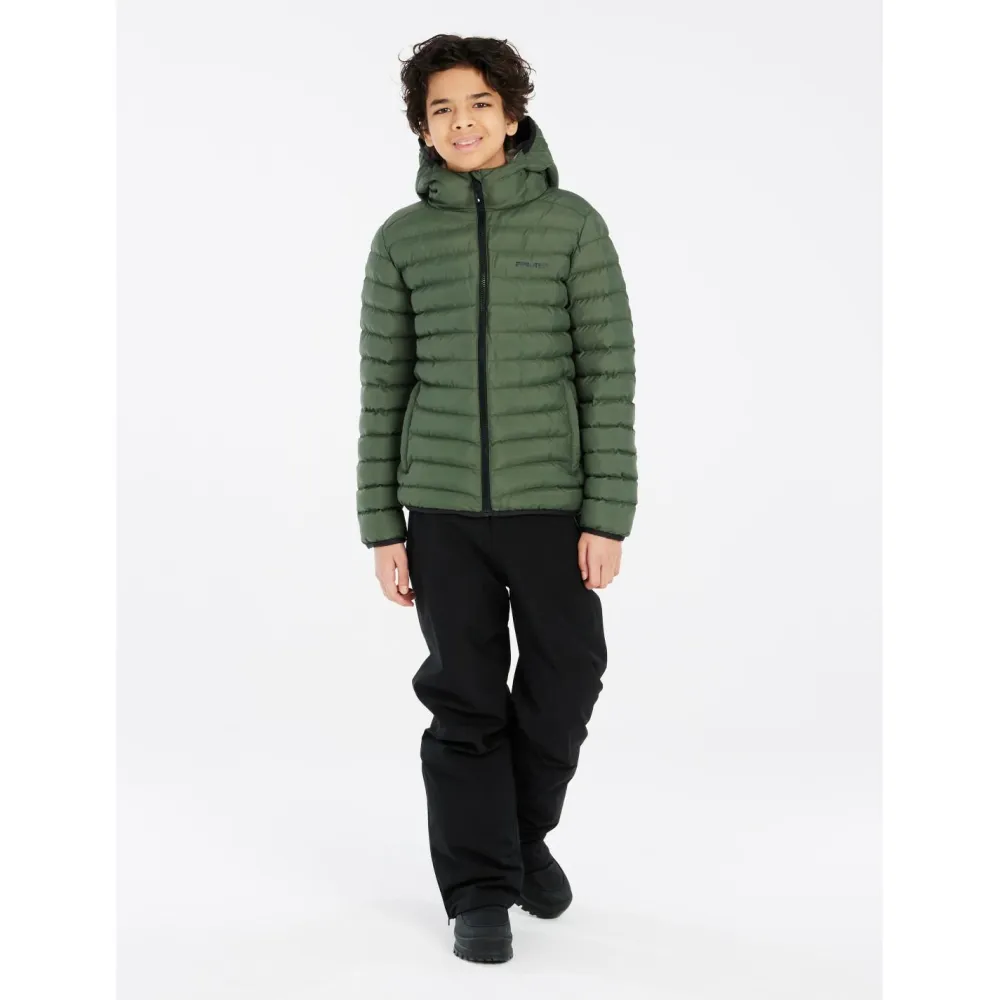 Mit der Kid’s PRTYates Outerwear Pufferjacket von Protest gibt’s eine wärmende Jacke für kalte Tage. Diese Kunstfaserjacke punktet vor allem durch ihren hohen Komfort und den bequemen Schnitt. Das Außenmaterial ist darüber hinaus wasserabweisend, wodurch leichter Niederschlag kein Problem darstellt. Im Inneren der Jacke sorgt außerdem eine Kunstfaserfüllung dafür, dass die Körperwärme zuverlässig gehalten wird. Praktisch ist dabei auch die ebenfalls wattierte Kapuze, die bei Bedarf für zusätzlichen Schutz sorgt.