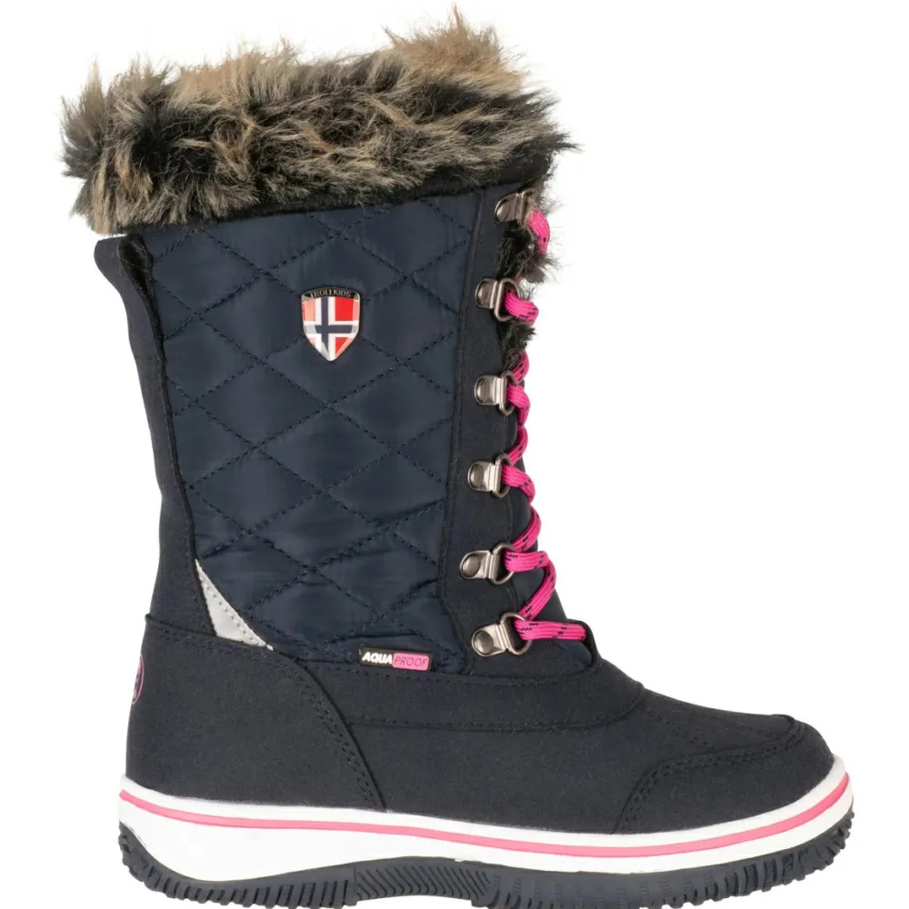 Modisch schick und ideal für den Einsatz an kalten Wintertagen geeignet sind die Girl’s Holmenkollen Snow Boots XT von Trollkids. Diese Winterschuhe können sowohl bei Ausflügen in den Schnee, als auch im Alltag punkten. Durch das robuste und wasserdichte Obermaterial halten sie Nässe und Schmitz zuverlässig ab. Zusätzlich wurden die Schuhe mit einer atmungsaktiven Membran ausgestattet. Diese sorgt dafür, dass im Inneren entstehende Feuchtigkeit schnell an die Umgebungsluft weitergeleitet wird. Das Innenmaterial besteht bei diesem Modell aus weichem Fleece. Hierdurch sind die Schuhe sehr angenehm zu tragen und verhindern das Auskühlen der Füße effektiv.
