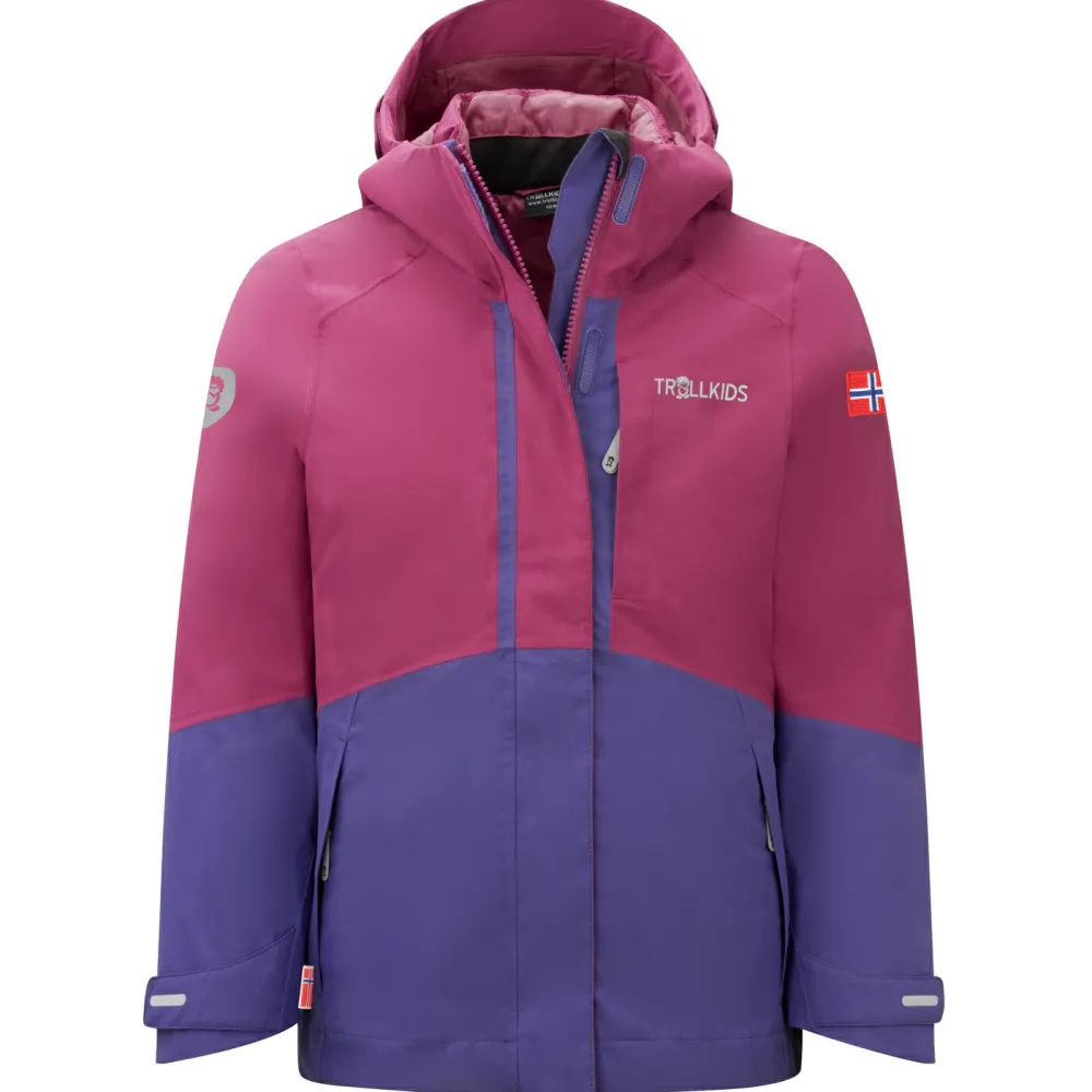 Ob auf der Piste oder in der Freizeit, mit der Doppeljacke Girl’s Skanden 3in1 Jacket von Trollkids ist Dein Kind immer gut ausgerüstet! Die Außenjacke bietet mit ihrem wasserdichten Material einen hervorragenden Schutz vor Nässe und Schnee. Zudem ist die Jacke atmungsaktiv, damit sich keine Körperfeuchtigkeit anstaut. An besonders ungemütlichen Tagen sorgt die Kapuze für Komfort und Wärme. Reflektierende Details an der Außenjacke liefern mehr Sicherheit in der Dämmerung.