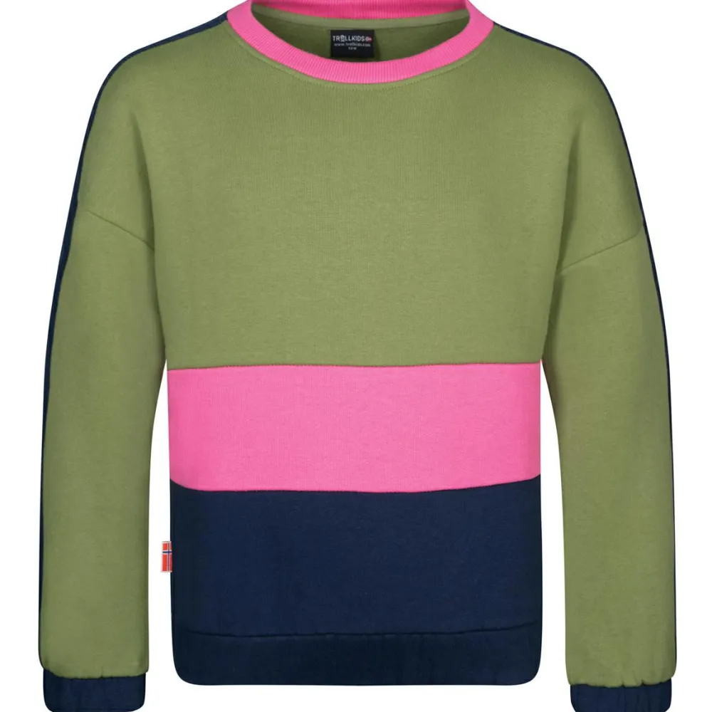 Mit dem Girl’s Verdal Sweatshirt von Trollkids hast Du einen lässigen Sweater im coolen Colourblocking-Design. Der Rundhalsausschnitt und die elastischen Bündchen sorgen für einen bequemen Sitz, egal ob Schule oder Freizeit.